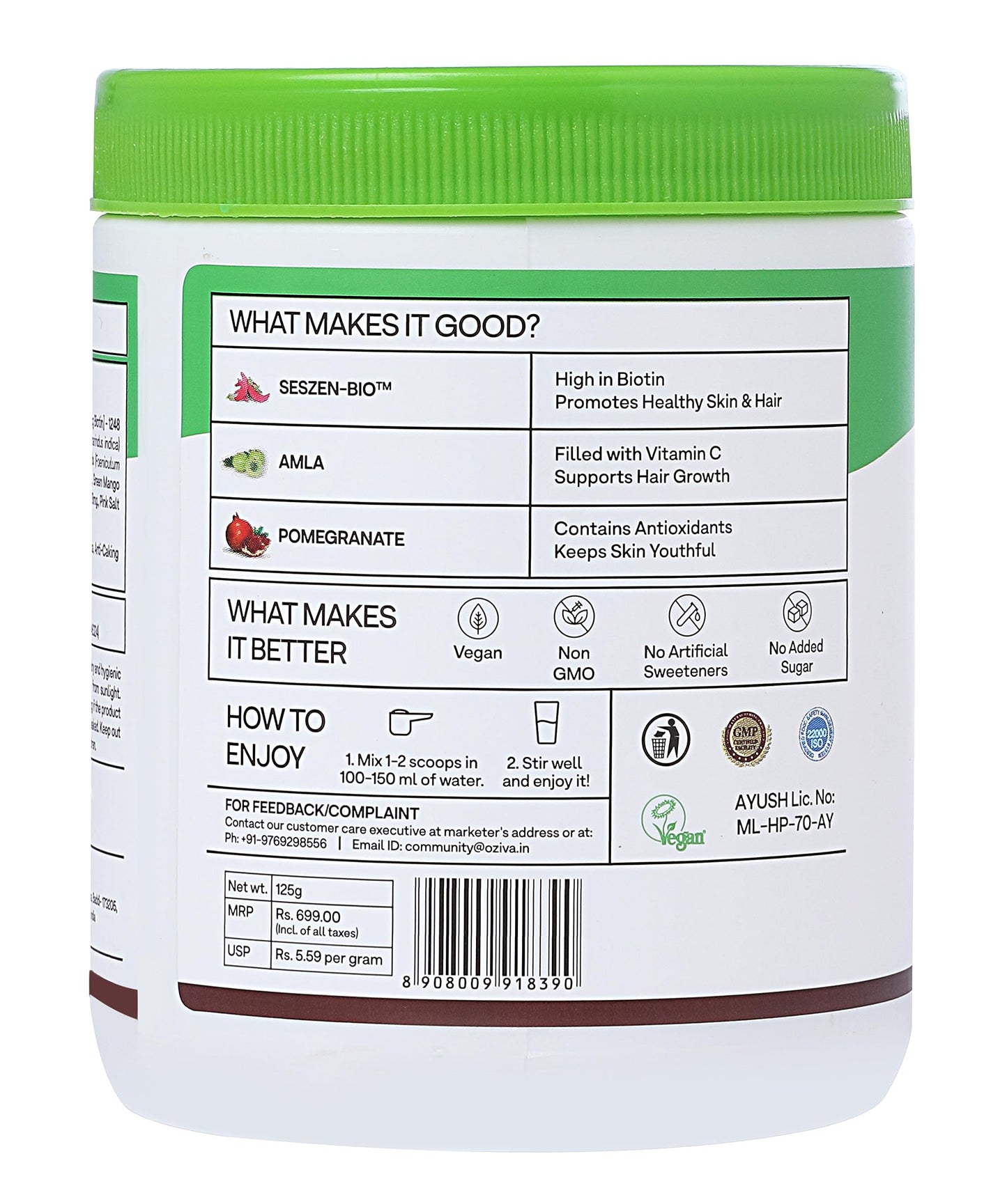 - BIOTIN FOR HAIR GROWTH: OZiva Plant Based Biotin for hair contains 10000 mcg of 100% natural Biotin derived from Sesbania Agati extracts. The proprietary blend of SesZenBio in this Biotin helps stimulate hair follicles up to 2 times to support hair growth and strengthen hair for longer and healthier hair from the inside-out.