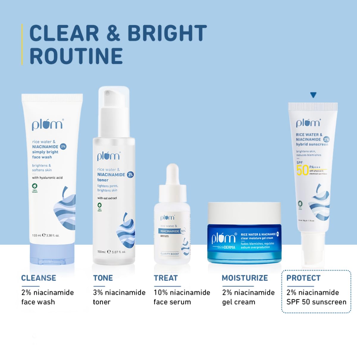 - BRIGHTENS & REDUCES BLEMISHES: 2% Niacinamide in the formulation helps brighten skin, clear blemishes & spots. It is also powerpacked with fermented Rice Water & Vitamin B5 to improve skin texture and barrier function by providing necessary hydration to the skin.