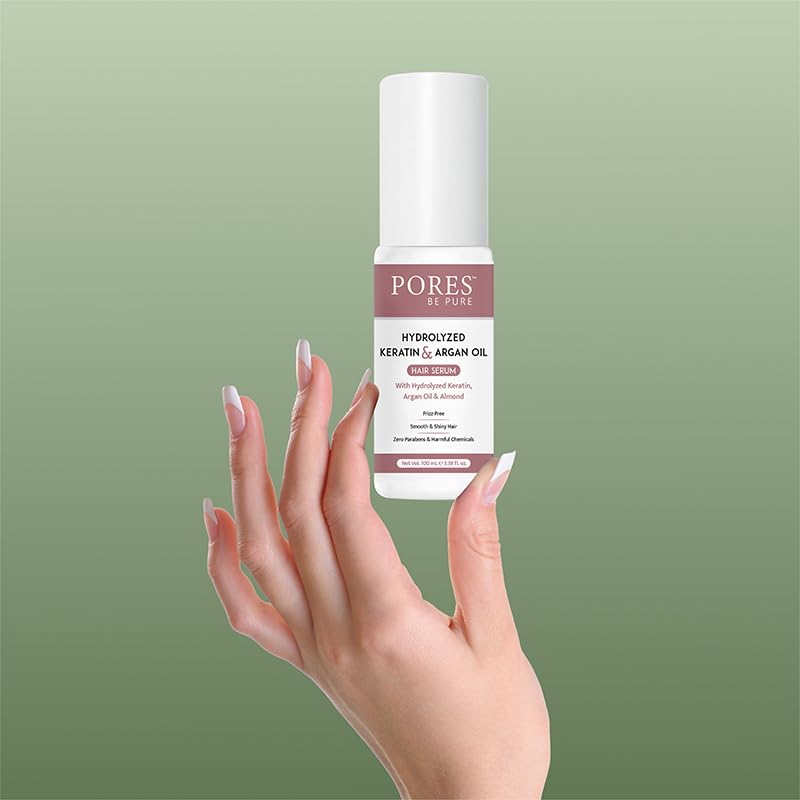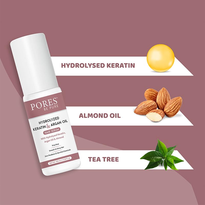 PORES Be Pure Hair Serum With Argan Oil, Hydrolyzed Keratin & Almond Oil For Dry, Frizzy & Tangle Fry, Soft and Smooth Hairs |Suitable for Women & Men
