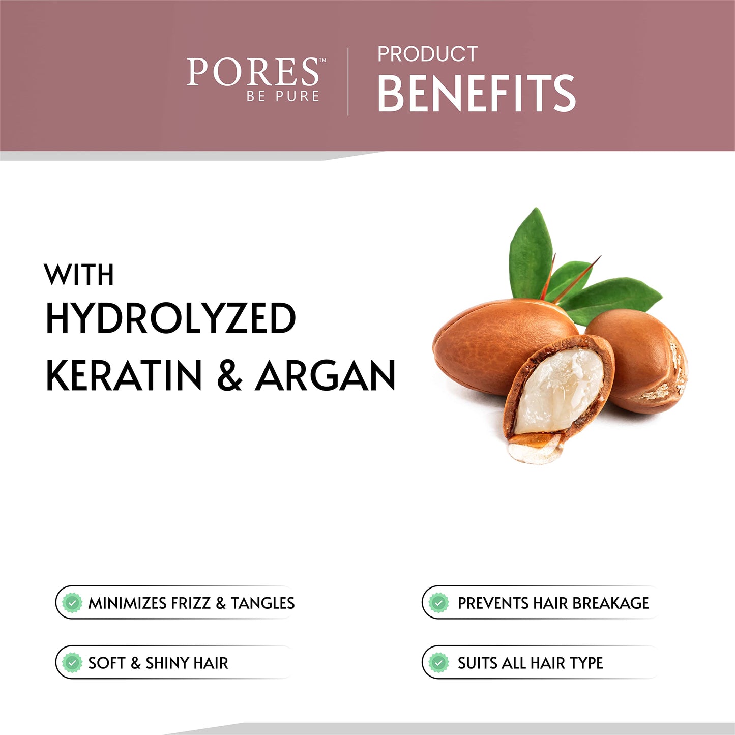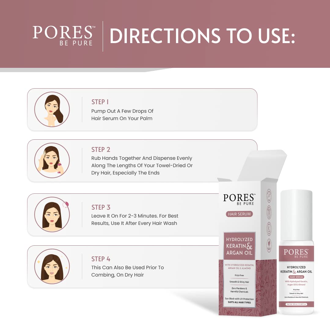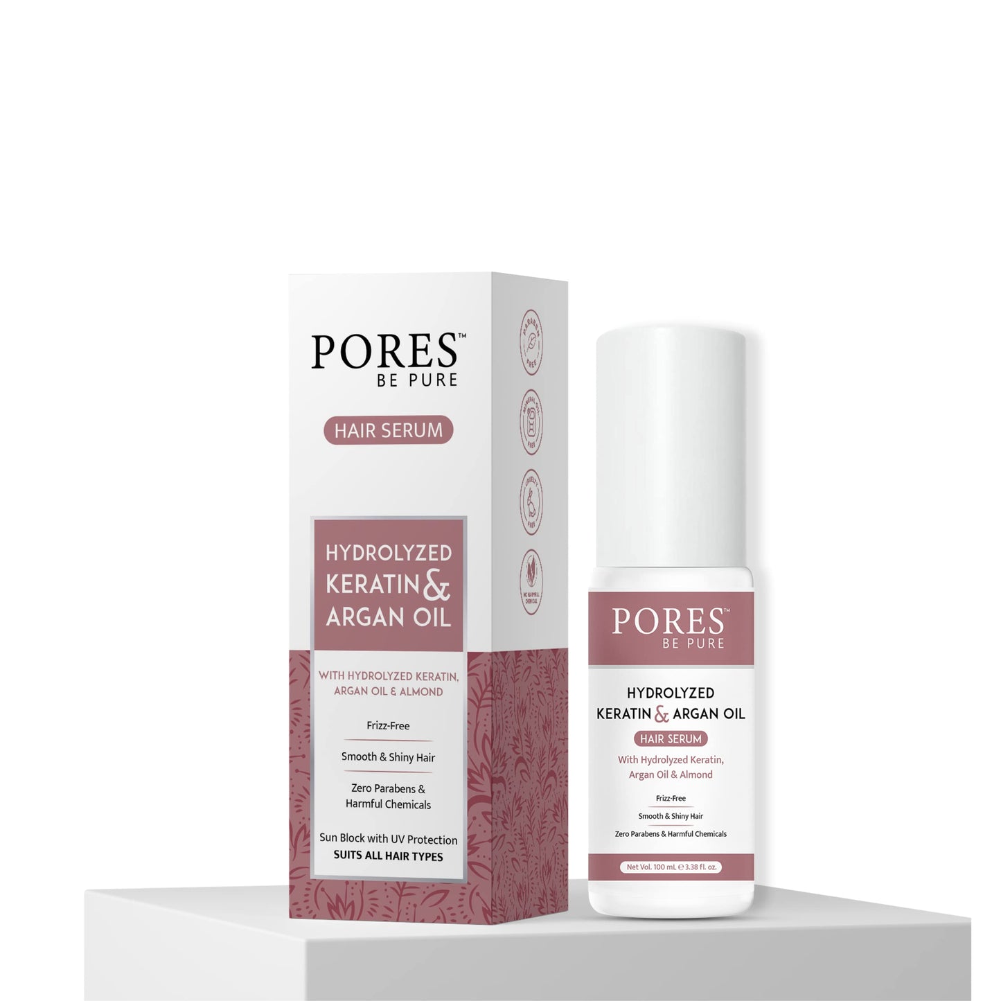 - REDUCES FRIZZ: We know that you're looking for a product that will give your hair the perfect amount of moisture and hold, so we created PORES Be Pure Hydrolyzed Keratin & Argan Oil Hair Serum. Our Hydrolyzed Keratin & Argan Oil is made with a blend of ingredients to help reduce frizz and frizz control. moisturizing treatment that hydrates and conditions hair while adding shine and softness.