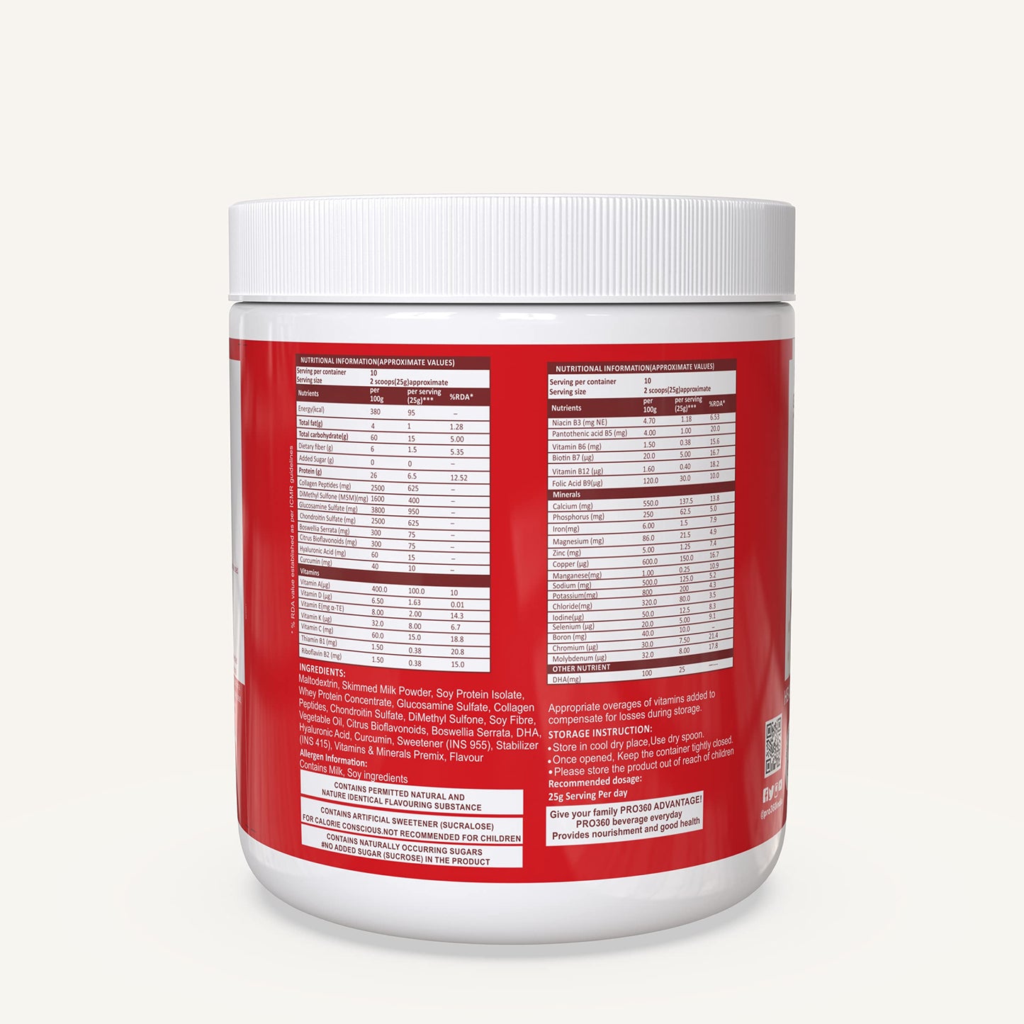 - Active Ingredients: Our protein drink enriched with Vitamin D and contains glucosamine with chondroitin sulfate, collagen peptides, msm, citrus bioflavonoids, boron and calcium which helps in managing bone and joint related problems
