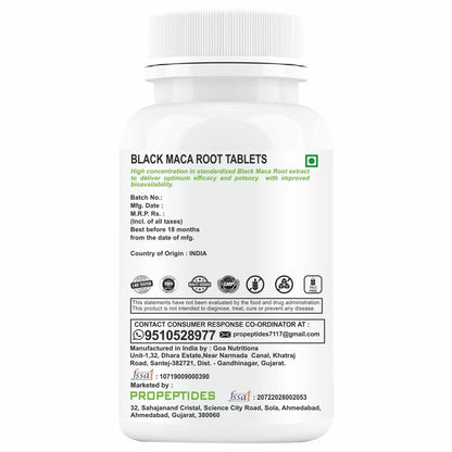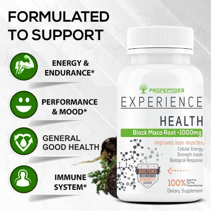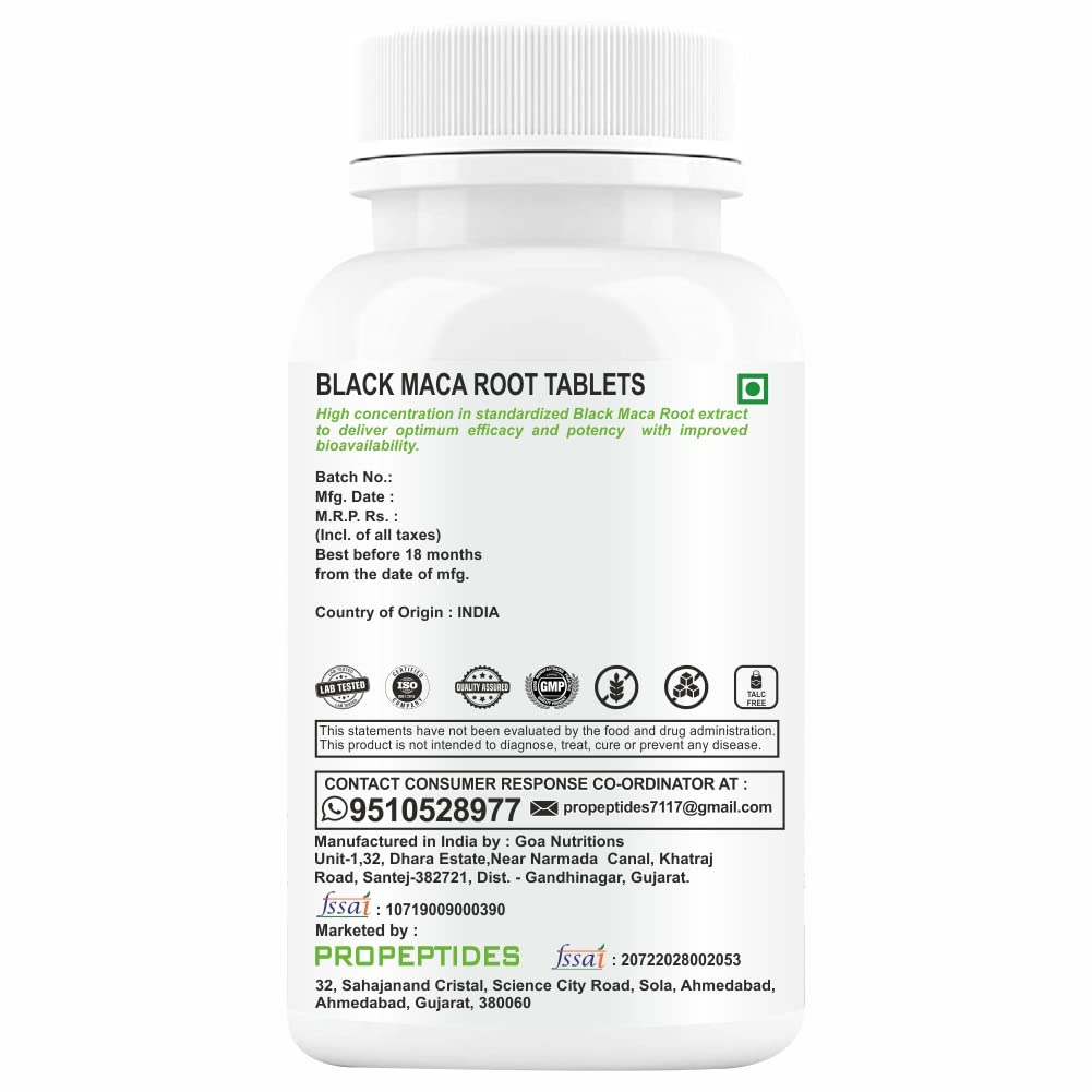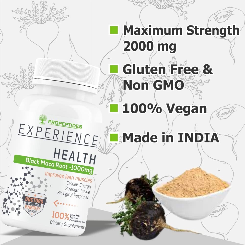 Propeptides Maca Root Powder Extract 1000mg, Black Peruvian Maca Rood Standardized, And Gelatinized,s dietary Supplement- 60 No Sugar Tablets (pack 1)