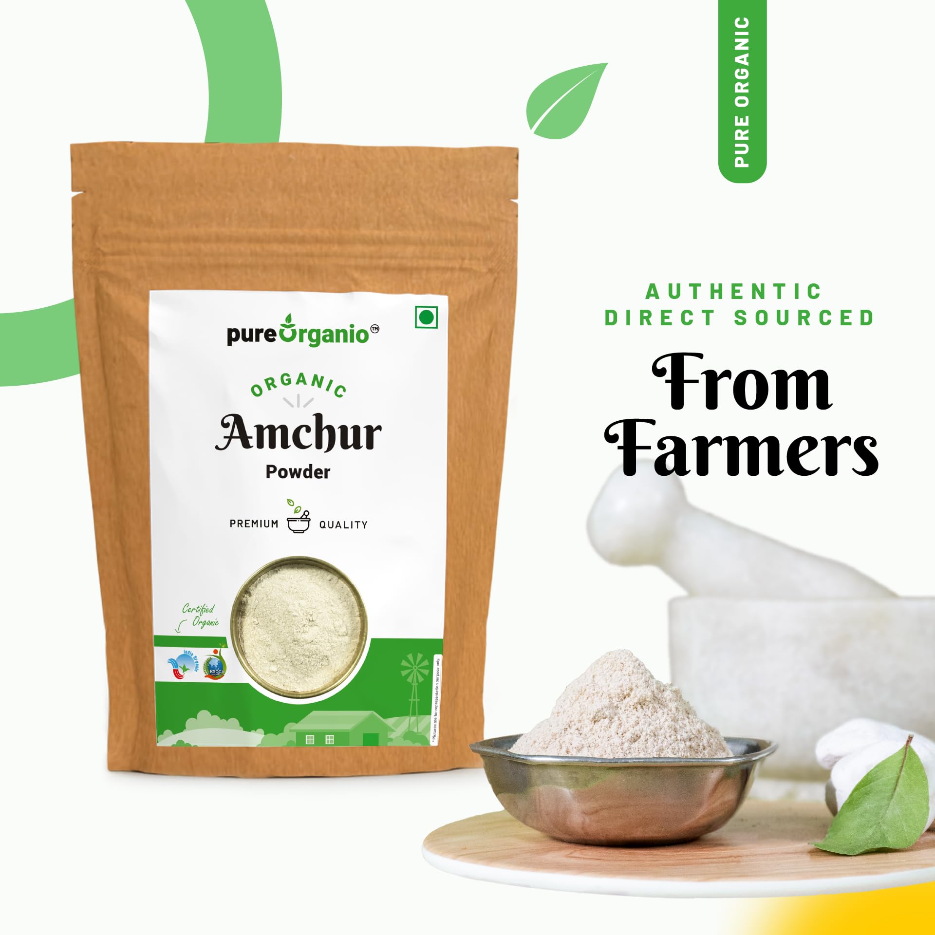 Pure Organio Organic Amchur Powder, Authentic Dry Mango Powder, Traditional Aamchoor Powder for Flavorful Indian Cuisine, NPOP Organic Certified Indian Spices (200 Gm)