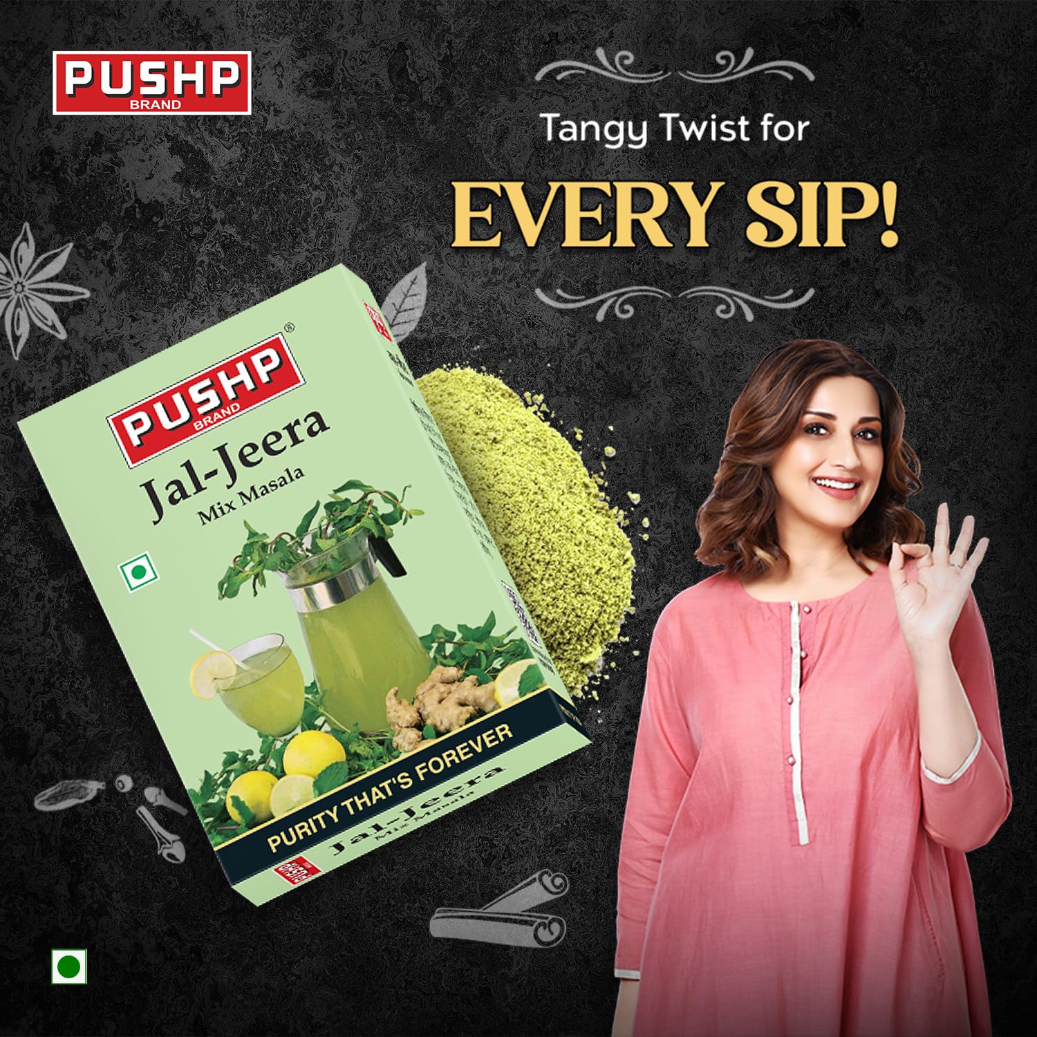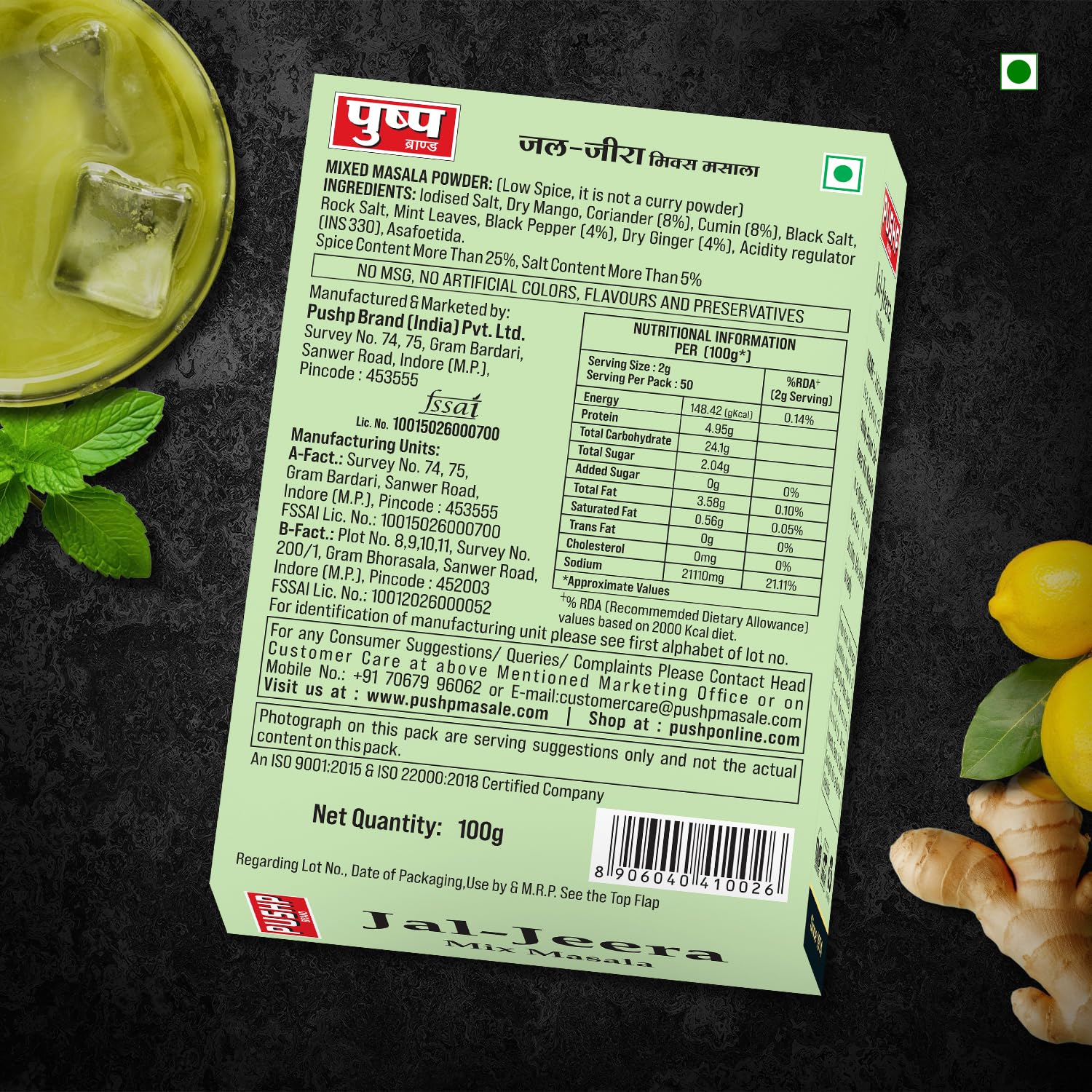 Pushp Brand Jal Jeera Powder (Masala) 100 g BOX | Pack of 1 | Instant Drink Mix Masala for Refreshing Summer Drink & Chat, Mint & Cumin Blend, No Artificial Colours | Hygienically Packed |