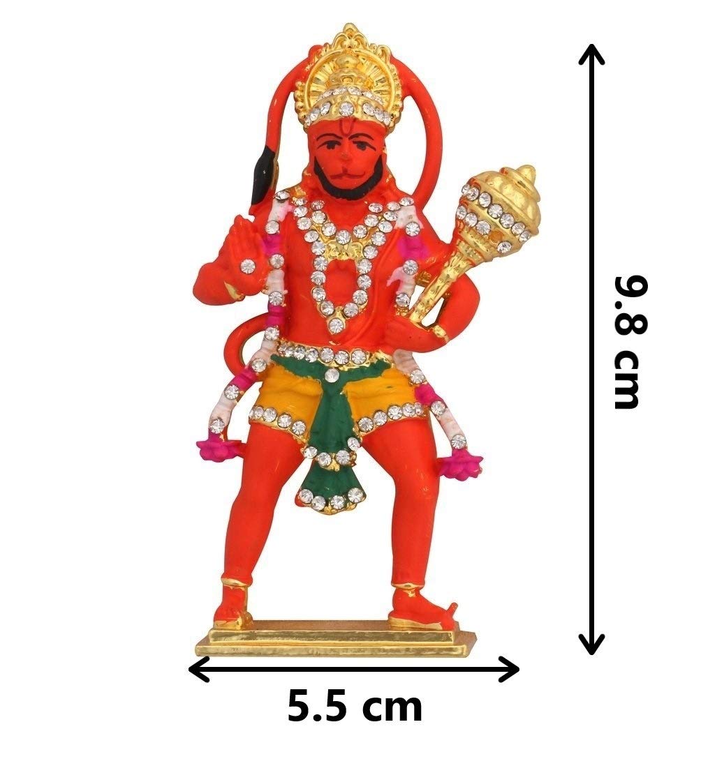 Relicon Lord Hanuman Idol | Bajrang Bali Ashirwad Idol (Design-49) Red Metal Statue for Car Dashboard (L*B*H-5.5 x 1 x 9.8 Cm)