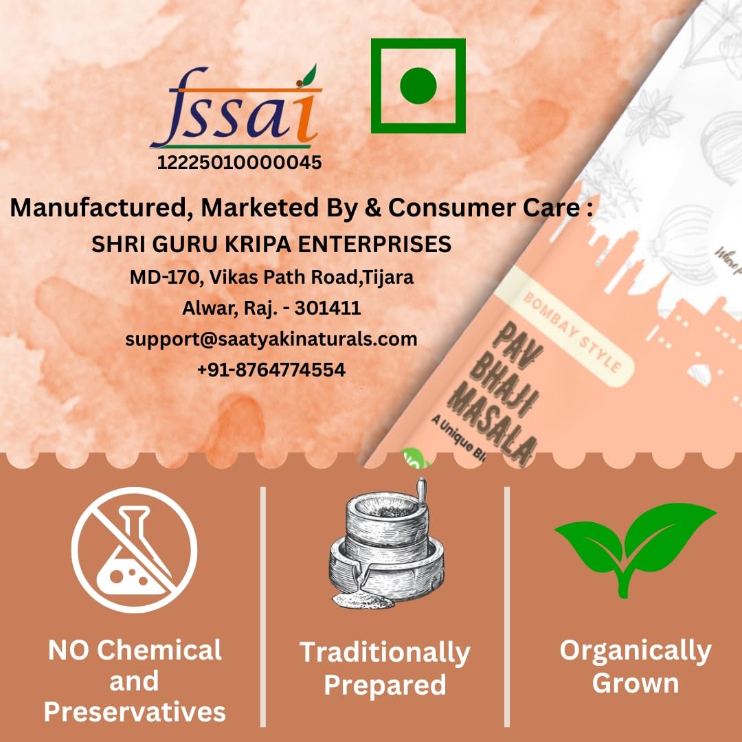 Saatyaki Naturals Pavbhaji_P 100gm – Authentic Mumbai-style Pav Bhaji Masala. Premium spice blend for Pav Bhaji, Tawa Pulao, snacks & curries. Brings real Mumbai taste to your kitchen.
