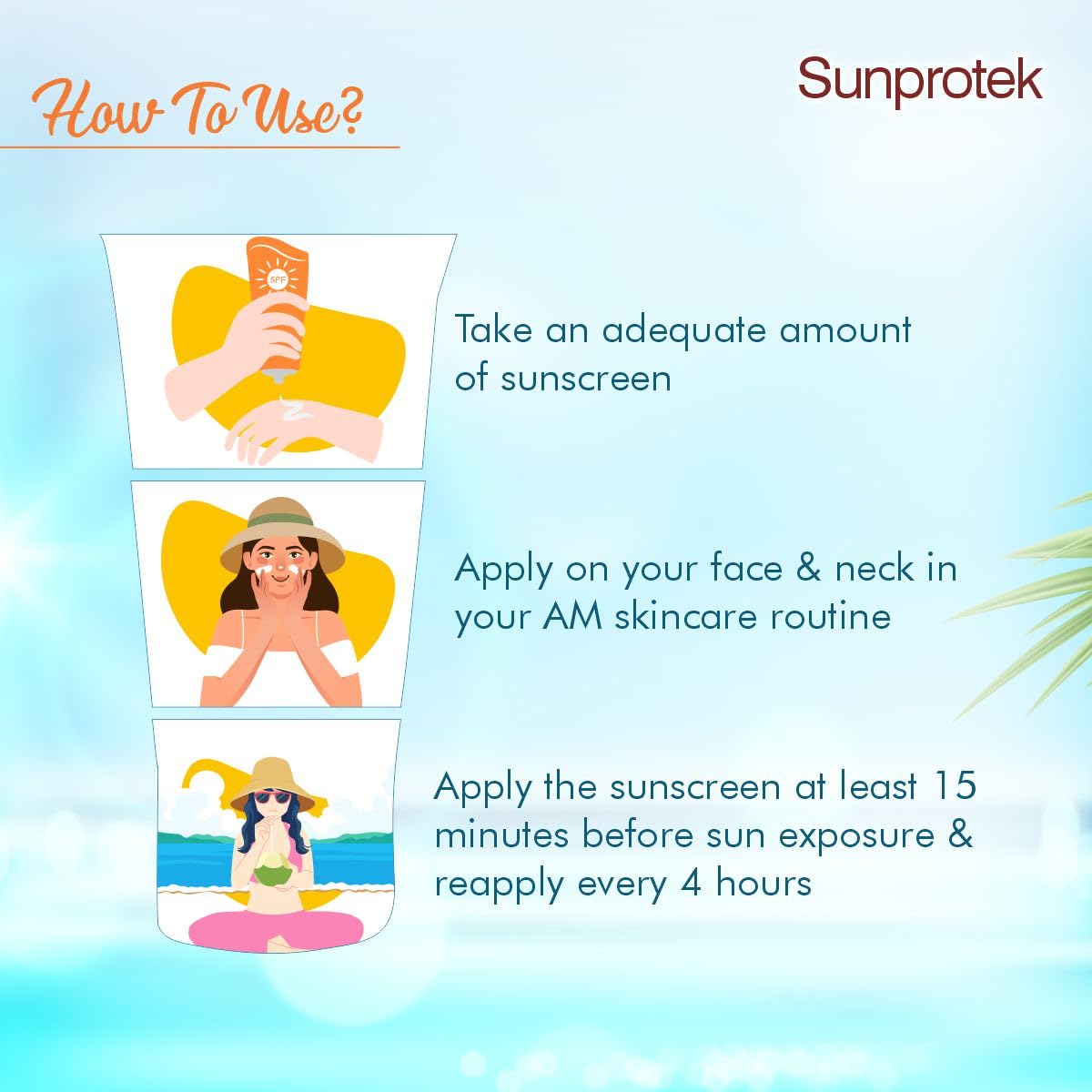 - 2. NON-GREASY & NON-TACKY FORMULA : Salve Sunprotek Broad Spectrum Sunscreen with SPF 30+ Lotion helps offer matte finish and a non-greasy appearance to the area where it is applied. It comes with non-greasy and non-tacky with activity of broad spectrum sun protection formula with SPF 30.