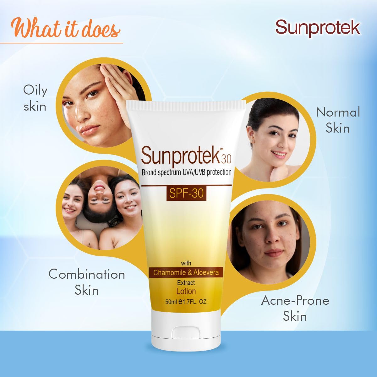 Salve Sunprotek Broad Spectrum Sunscreen with SPF 30+ Body & Face Lotion Protects from Harmful UVA/Uinish, Repairs Sun Burn Sun Tan - 50 ML(Pack of 1)