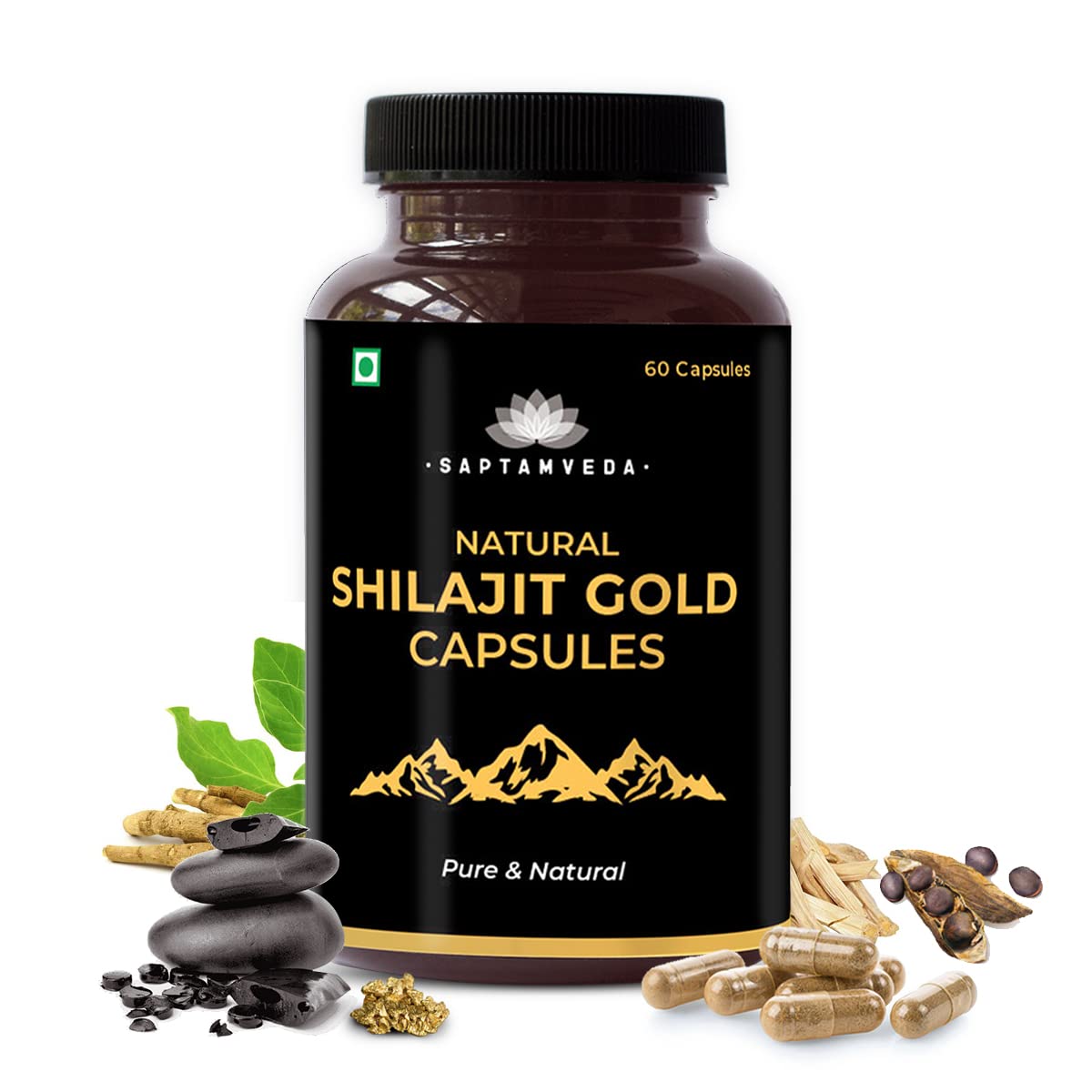 Saptamveda - 60 Capsules Supplement with Ashwagandha, Safed Musli, Shatavari, and Gold Bhasma