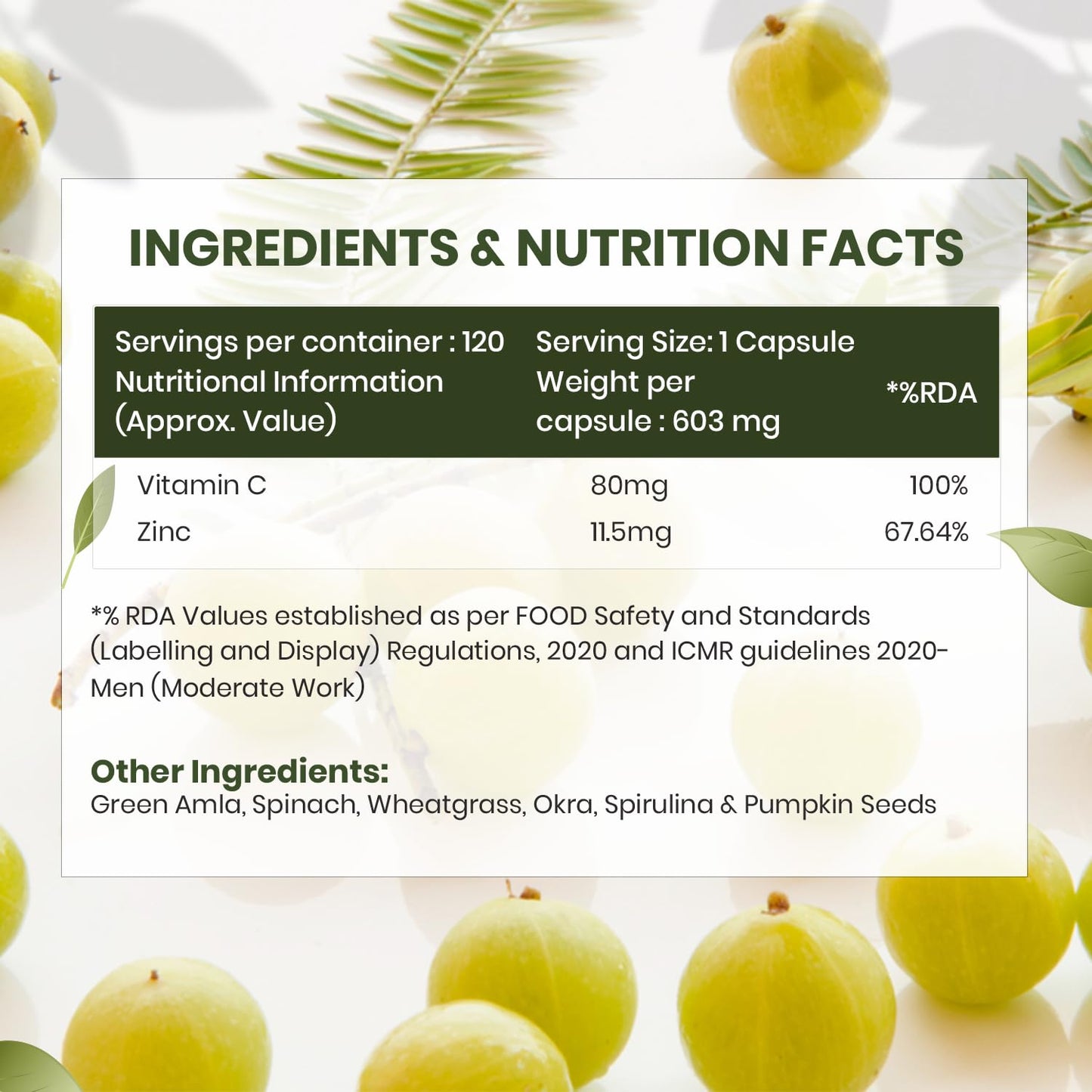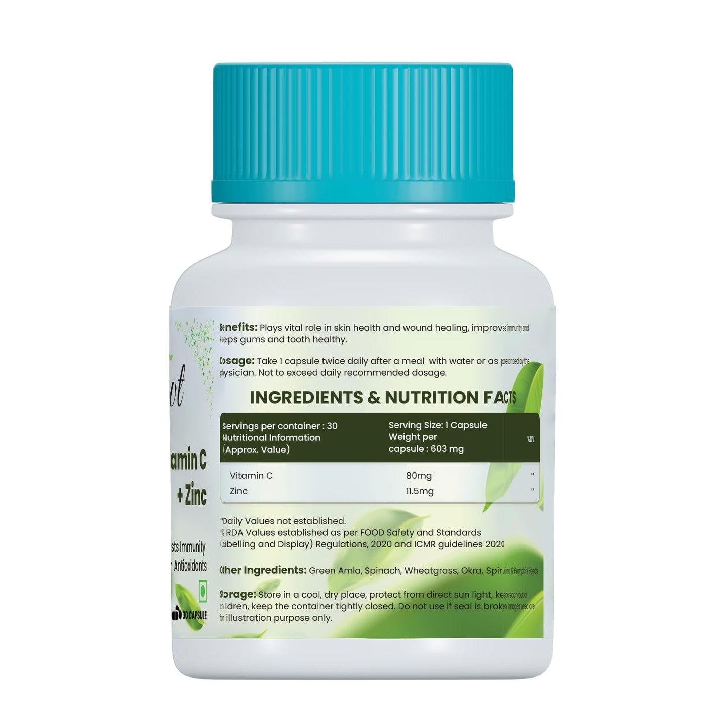 - ✔ POTENT ANTIOXIDANT: Comprising plant-based ingredients like Green Amla, Spinach, Wheatgrass, Okra, Spirulina, and Pumpkin Seeds, Sprowt Vitamin C with Zinc Capsules are a powerhouse of antioxidants. They neutralize free radicals responsible for tissue damage and provide protection against oxidative stress.