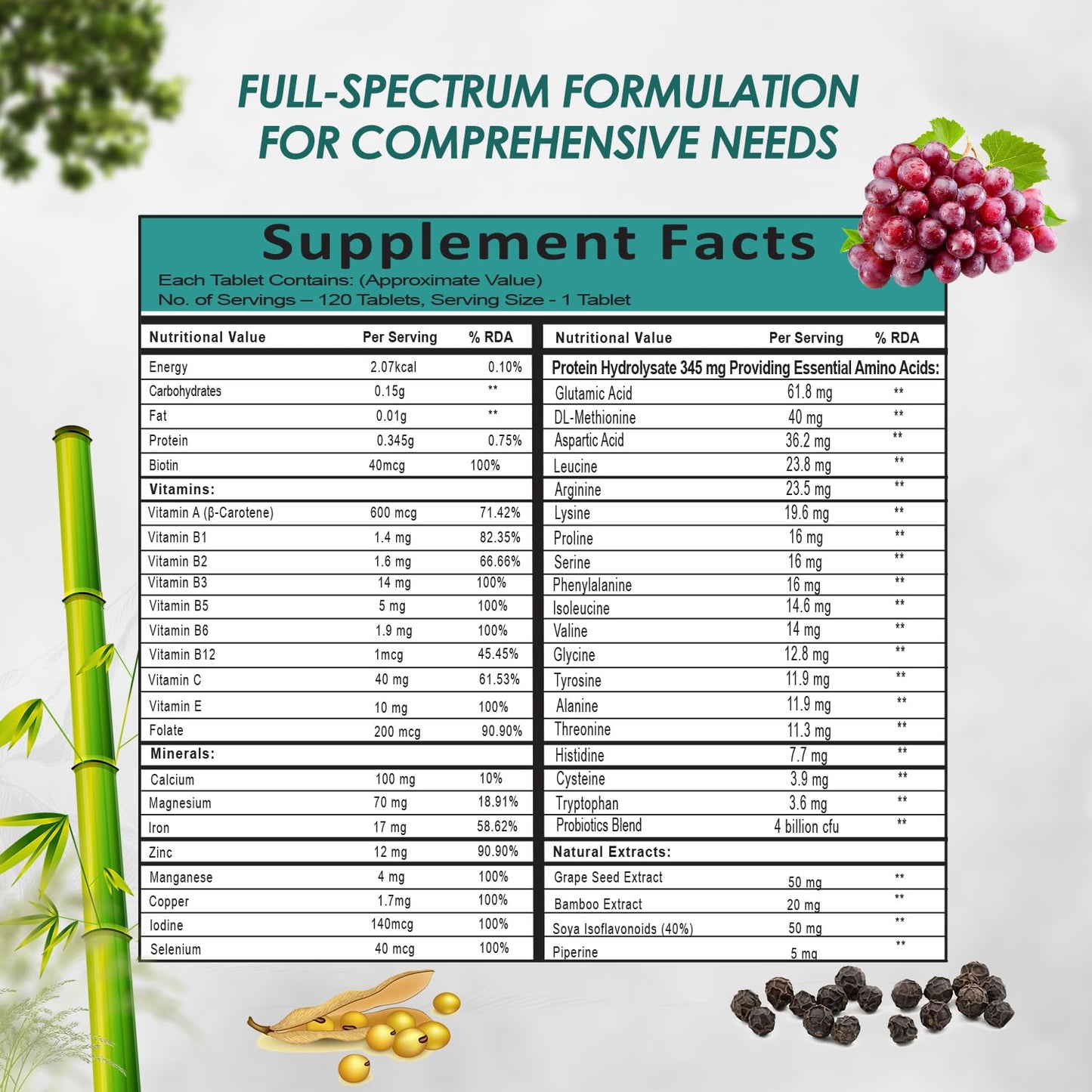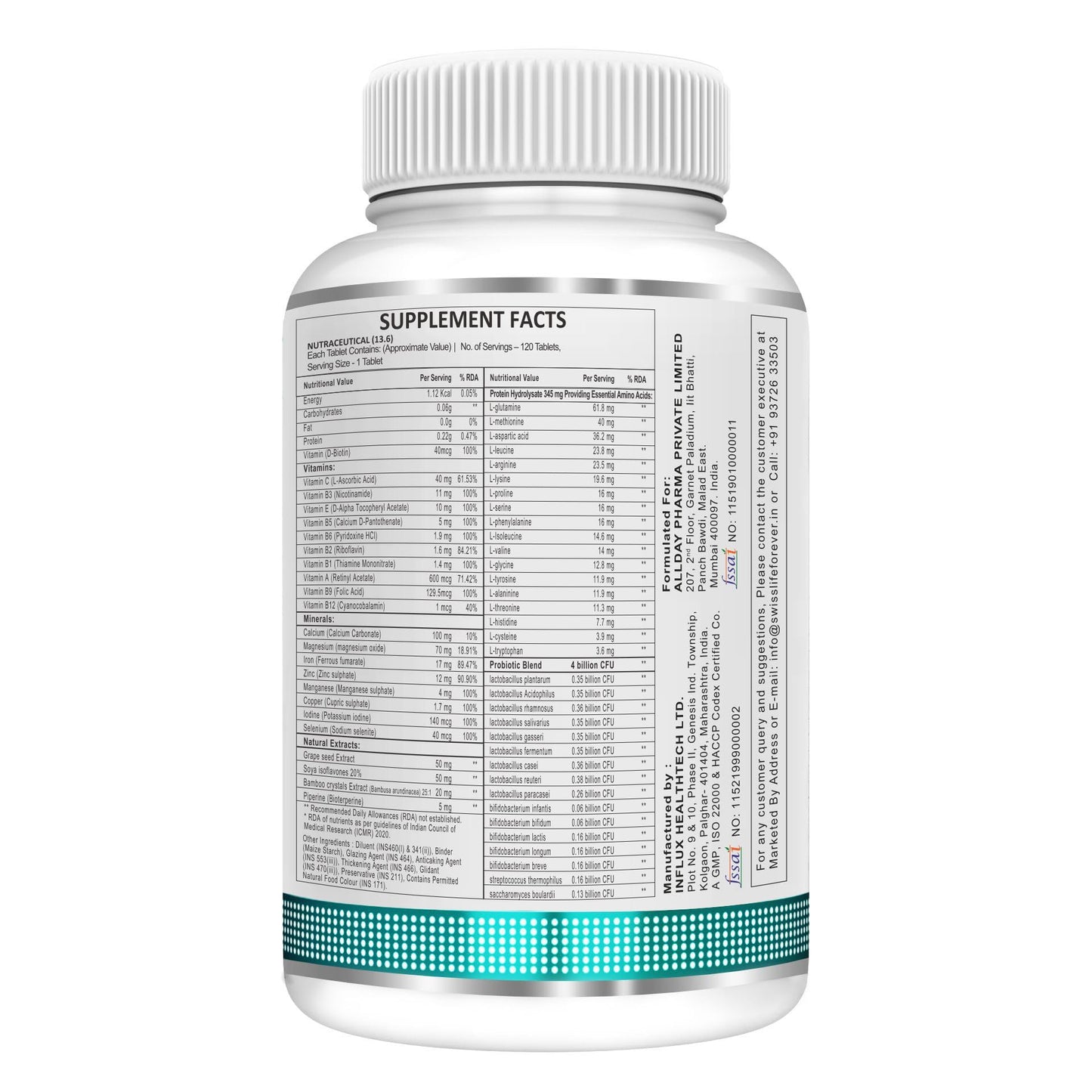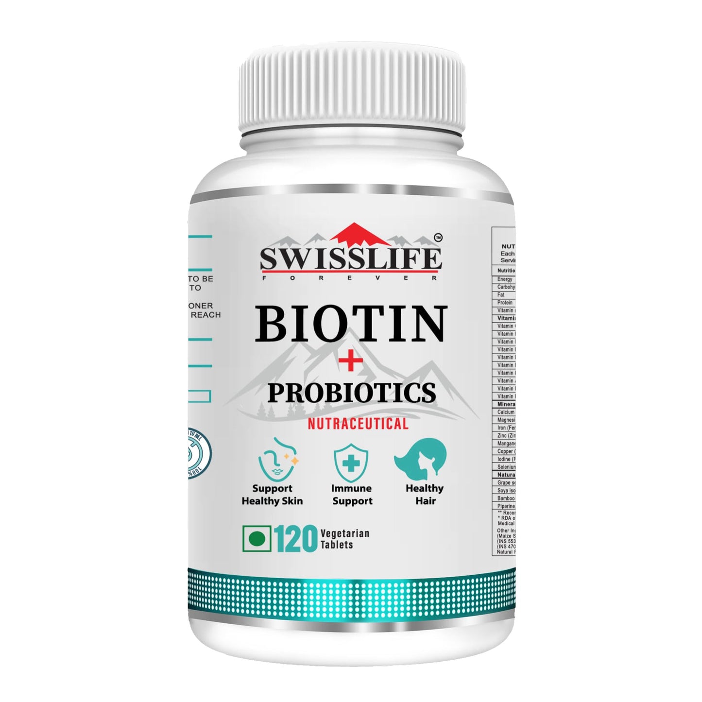 SWISSLIFE FOREVER Biotin with Probiotics (120 Veg Tablets) | Vitamin A,C,E,B1,B2,B3,B5,B6,B9,B12 | for Long & Thick Hair Growth | Glowing Skin & Longer Nails for Men & Women