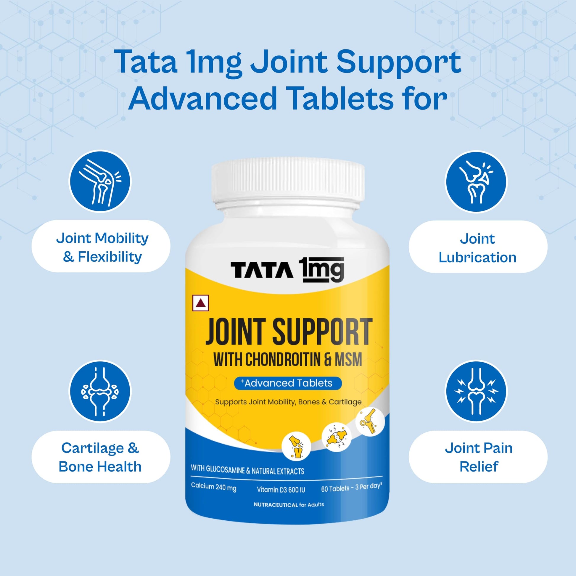 Tata 1mg Joint Support Advanced Tablet with Glucosamine, MSM, & Chondroitin, For Men & Women, Pack of 60 Tablets