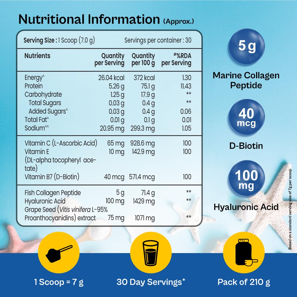- PURE & HYDROLYZED MARINE COLLAGEN: Our marine collagen is carefully processed to support collagen supplementation, ensuring better absorption for improved skin, hair, and joint health