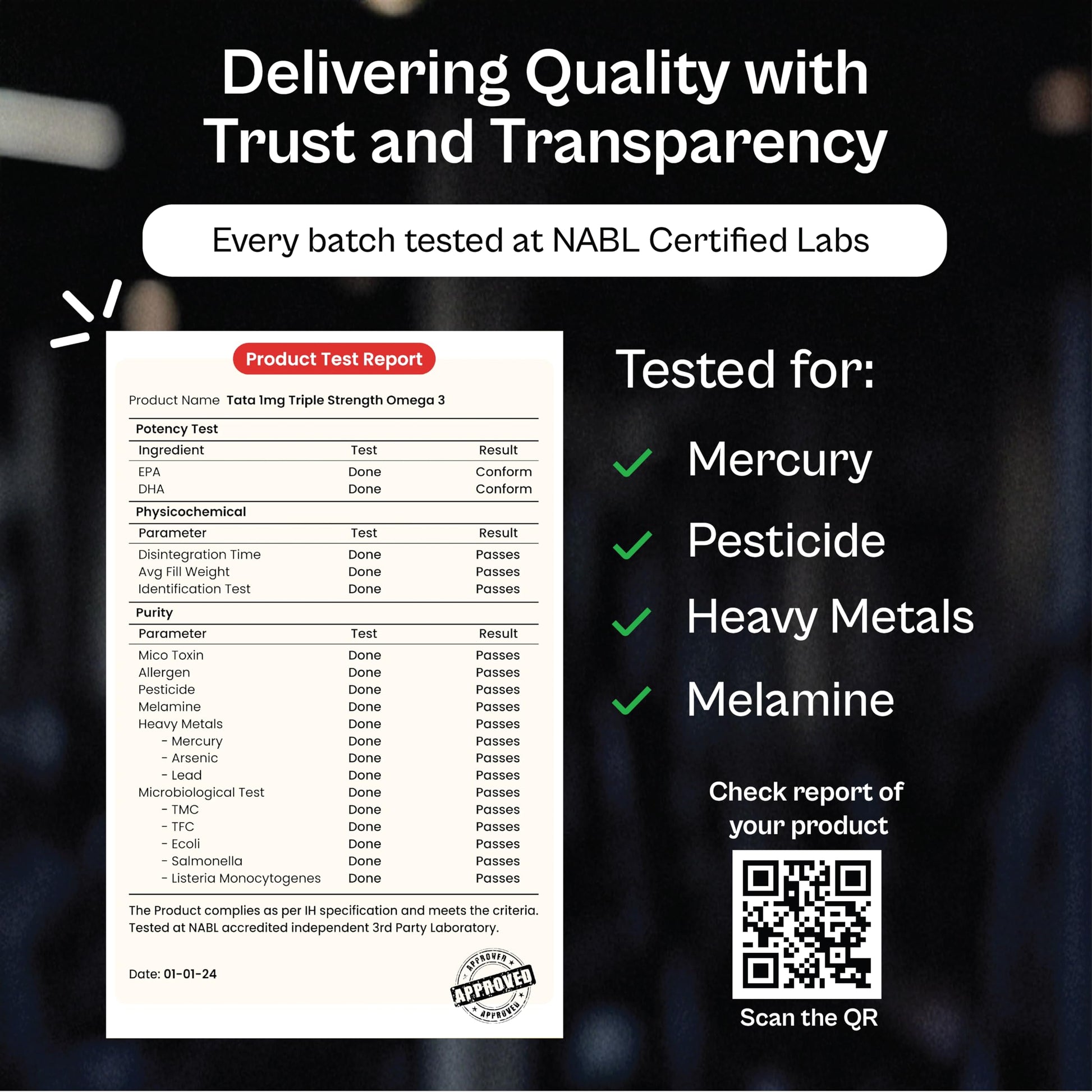TATA 1mg Triple Strength Omega 3 Fish Oil Capsules 1250mg | 560mg EPA & 400mg DHA - High Strength Omega 3 | For muscle recovery, heart & joints | Pack of 90