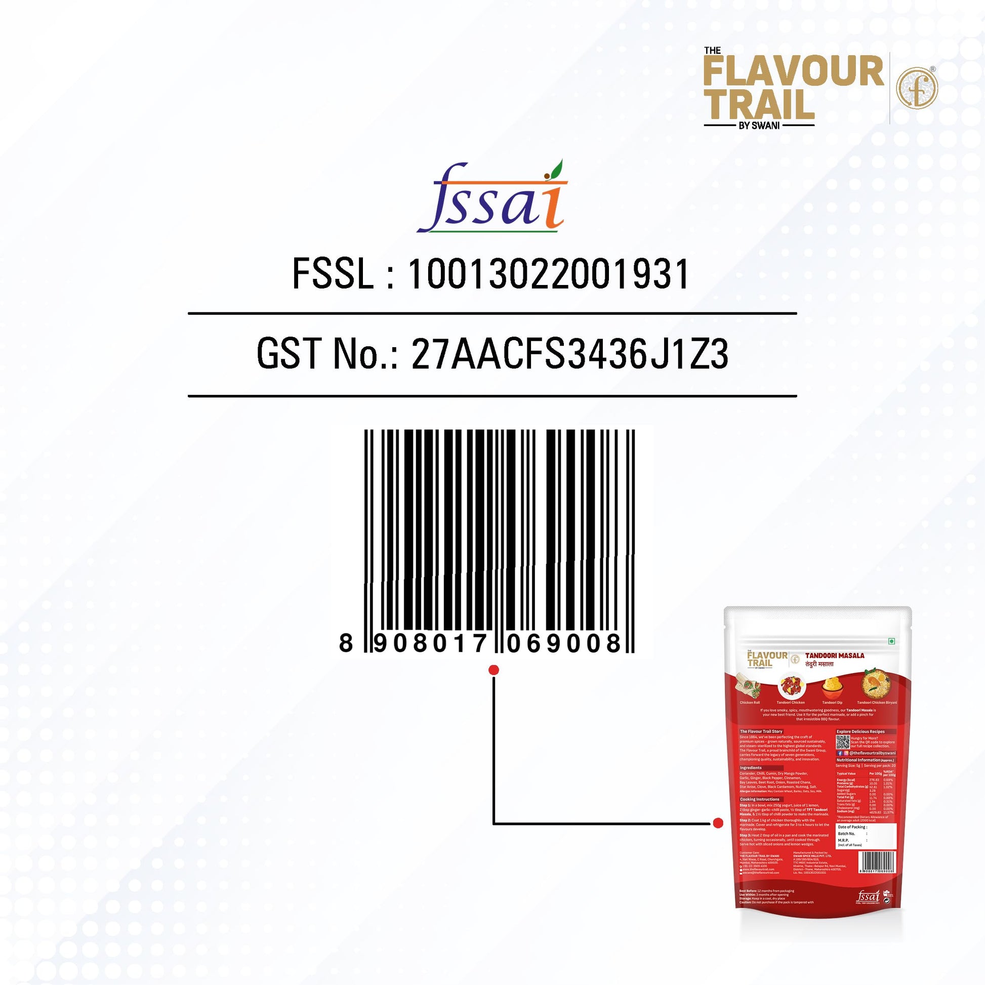 The Flavour Trail Pure & Natural Tandoori Masala | Smoky & Bold Indian Spice Blend | Ideal for Grills, Kebabs, Roasts, Smoky Curries, Grilling, BBQ, Marinades & Tandoori Dishes |100g