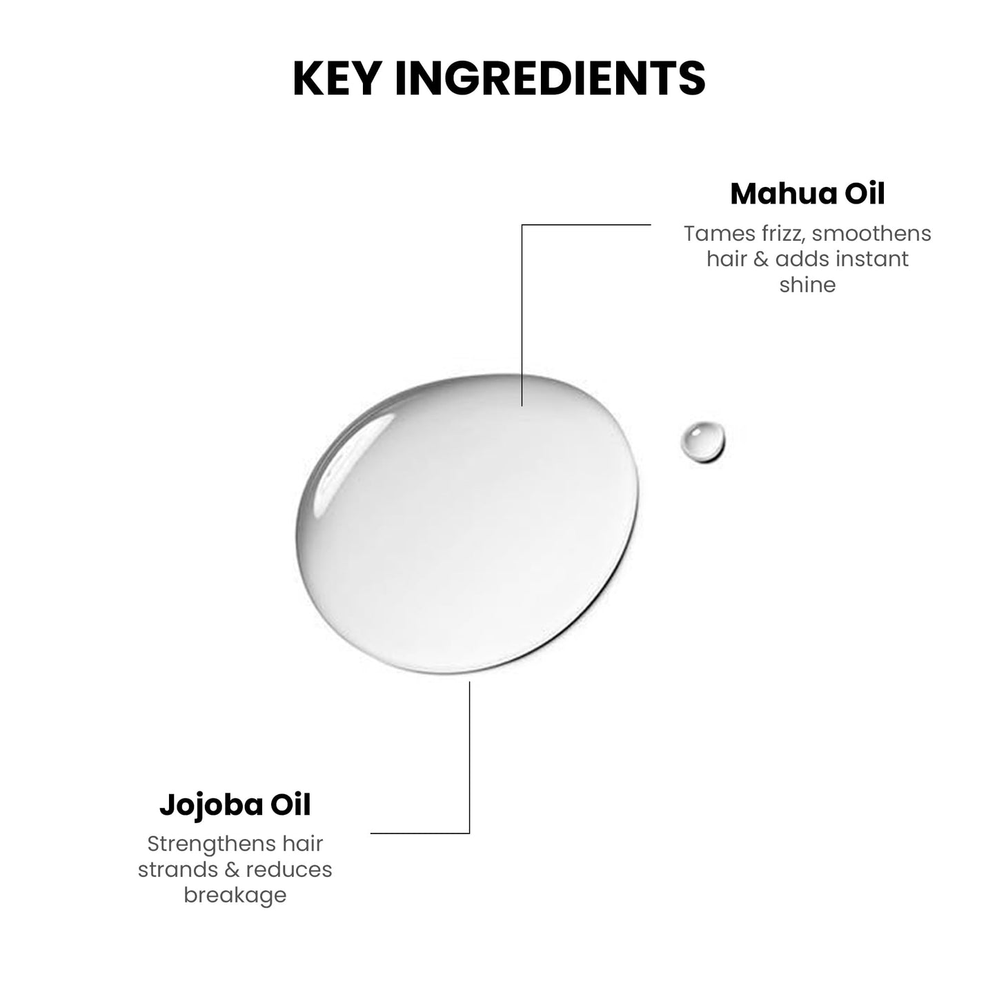 - EFFECTIVE INGREDIENTS FOR HYDRATED AND SHINY HAIR: The Serum is formulated with high-performance ingredients like Mahua Oil, Jojoba oil and Castor oil. The combination of these oils makes the serum intensely hydrating while being extremely lightweight.