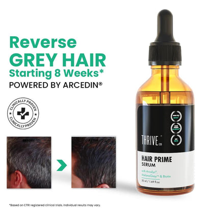 ThriveCo Hair Prime Serum With Anti Greying Arcolys, Biotin & Black Tea Extract, Light-Weight, Non-Sula, Ammonia Free & Cruelty Free, 50 Ml, Pack of 1