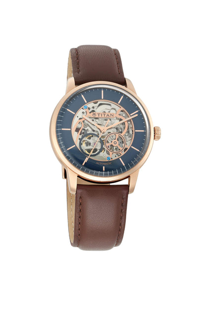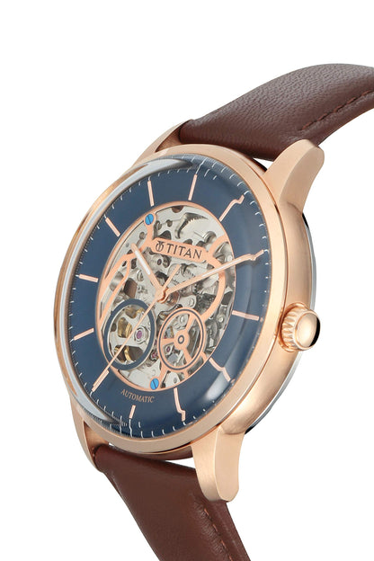 Titan Mechanical Analog Blue Dial Men's Watch 90110WL02/NN90110WL02/NP90110WL01 Genuine Leather, Brown Strap