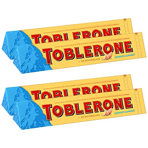Toblerone of Switzerland Swiss Milk Chocolate with Crunchy Almonds, 4 Pack Pouch, 4 x 100 g