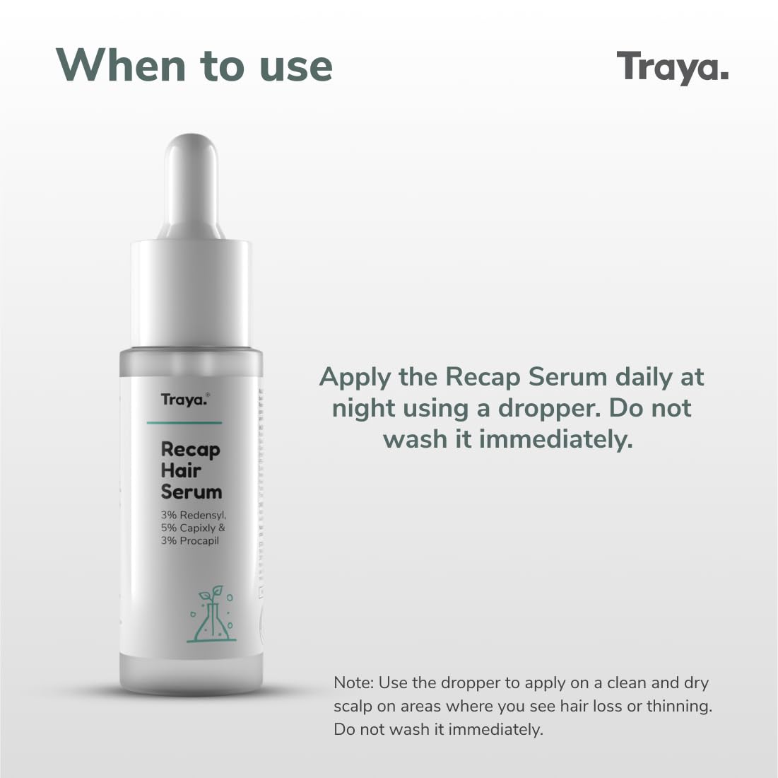- Hair growth serum alone doesn’t help resolve Hair loss. It is a matter of internal and external imbalances which differ from person to person. Know that Hair Growth can only be achieved over time by holistic treatment of the underlying issues which can be achieved by following the complete Traya treatment plan.