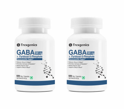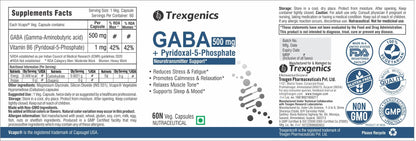 Trexgenics GABA (Gamma aminobutyric aicd) 500 mg, Pyridoxal 5 Phosphate 1 mg, Neurotransmitter, Streport VEGAN & NON-GMO (60 Veg Capsules) (Pack of 2)