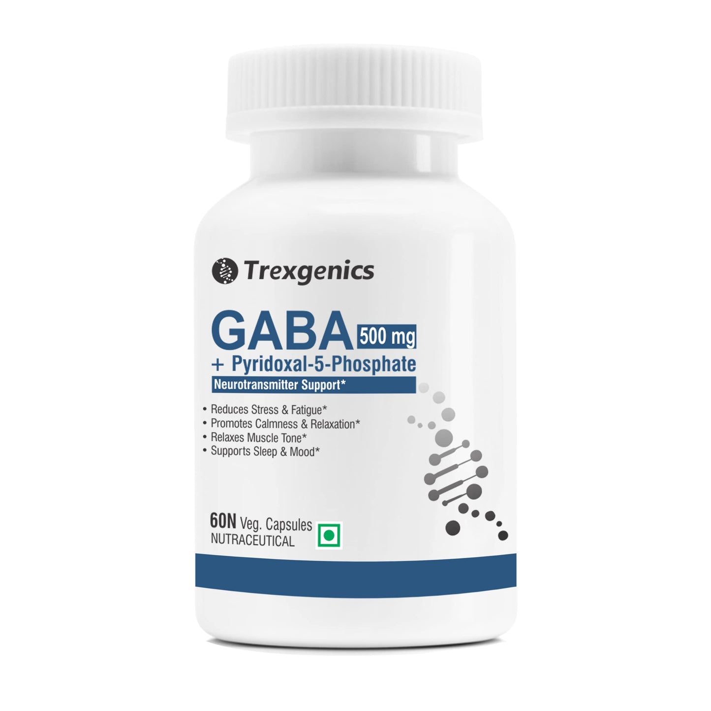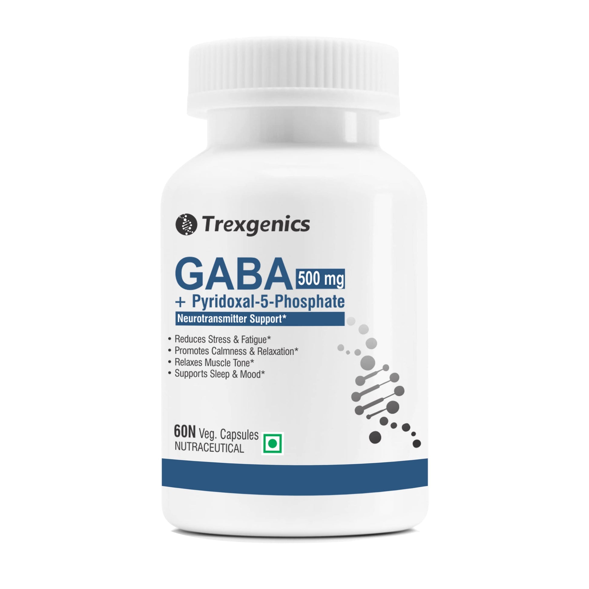 Trexgenics GABA (Gamma aminobutyric aicd) 500mg, Pyridoxal 5 Phosphate 1 mg, Neurotransmitter, (60 Veg Capsules)