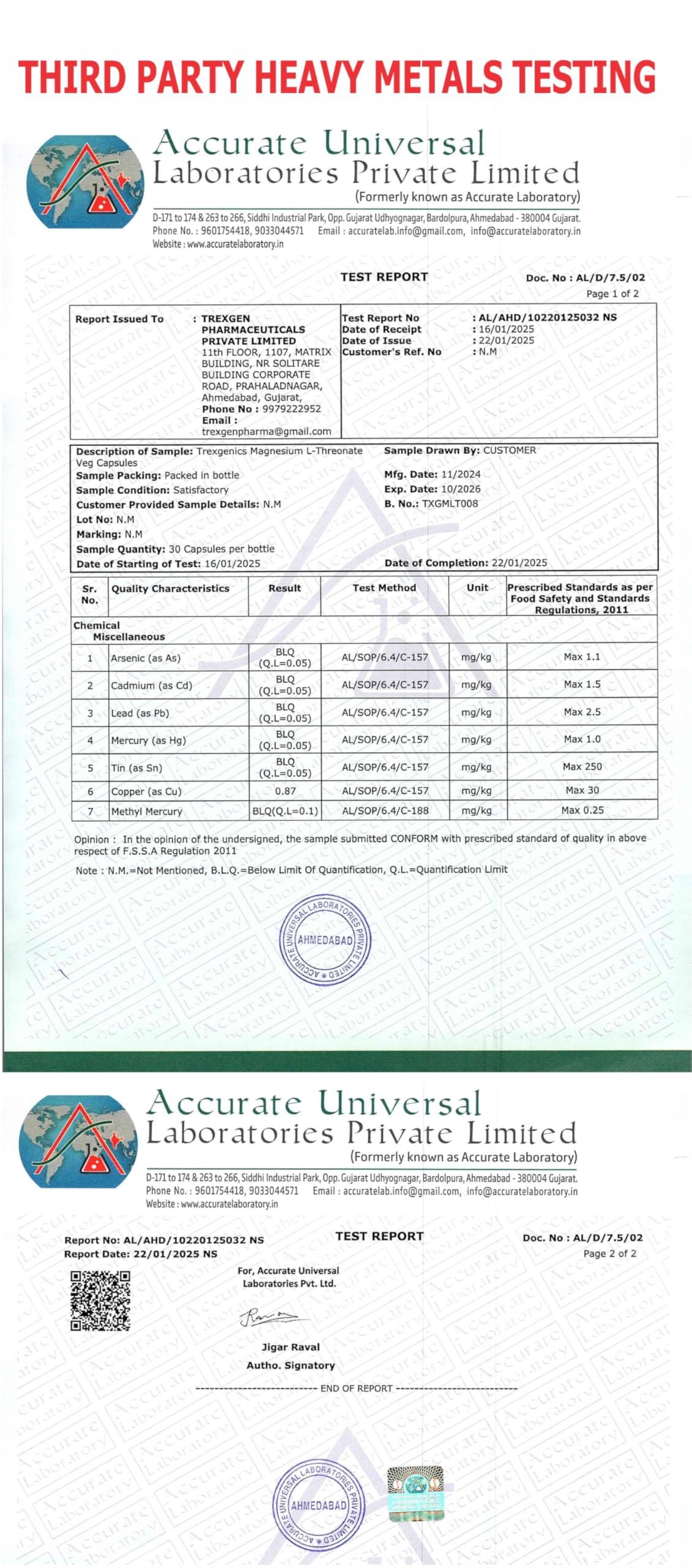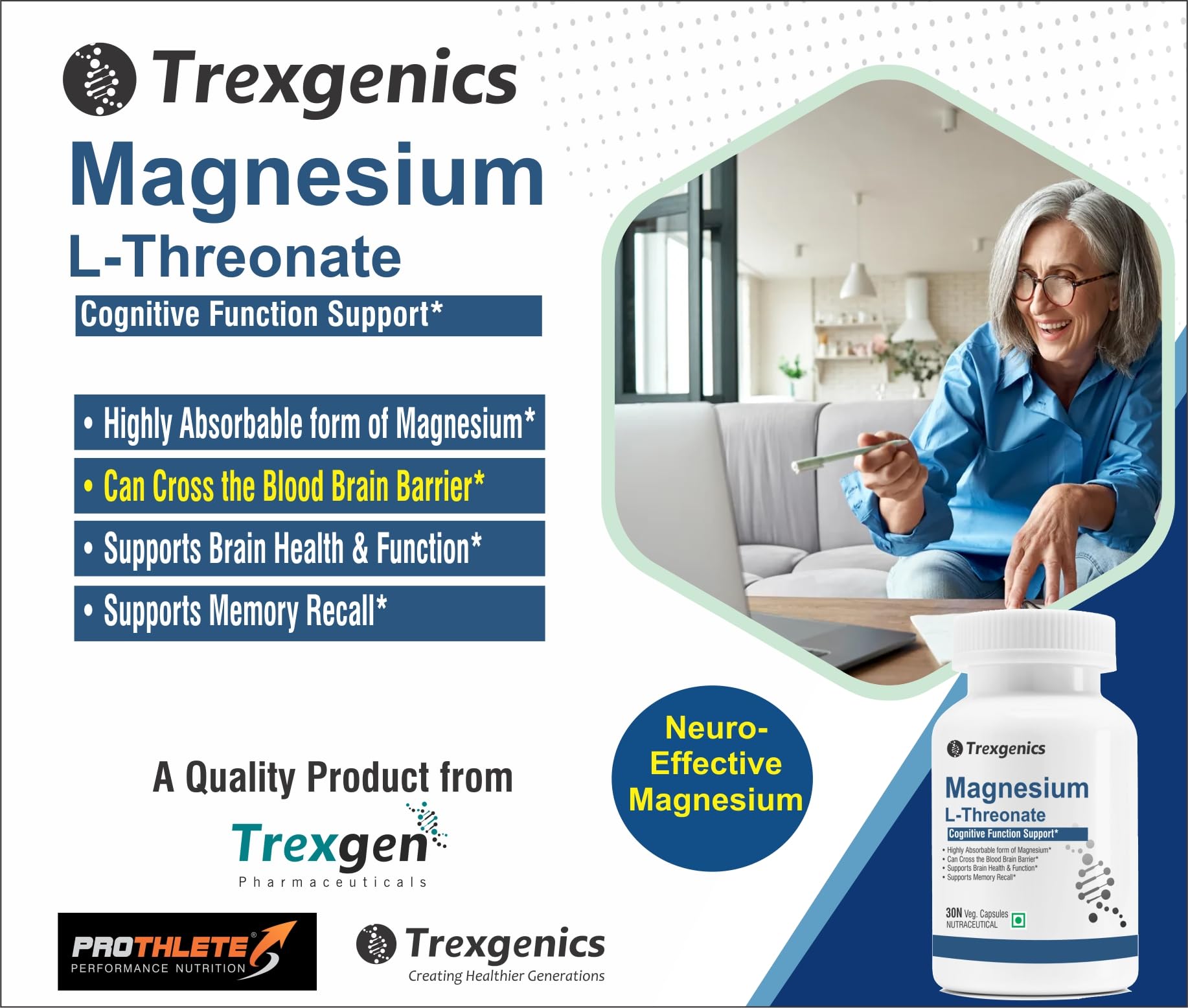 • Trexgenics Magnesium L Threonate provides highly absorbable & Bioavailable Magnesium to support Cognitive Function & Brain Health Support.