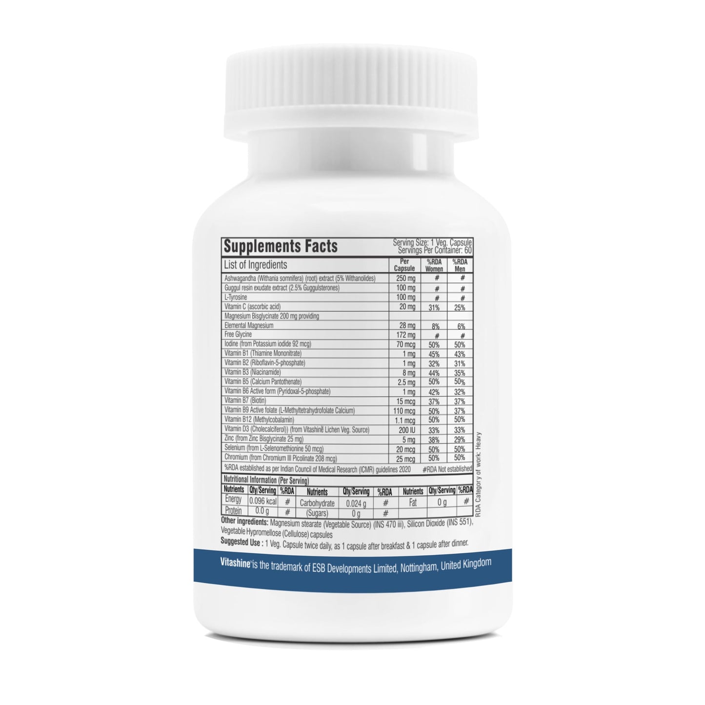 Trexgenics Thyrofree Comprehensive Thyroid with Ashwagandha 5%, Natural Herbs, Iodine, Vit C, D3 (60 Veg Capsules)