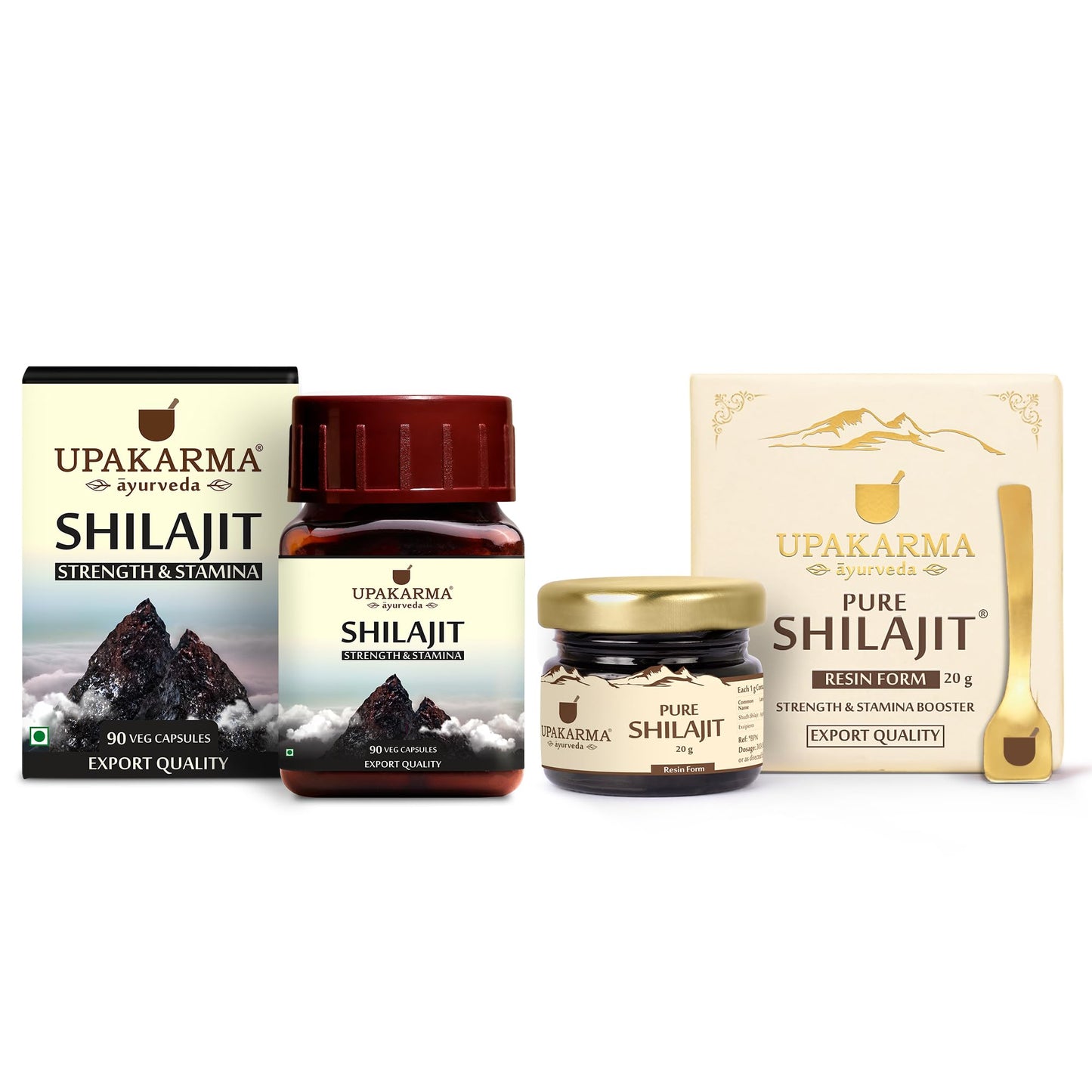 UPAKARMA Combo Pack of 90 Shilajit Extract Capsules and 15g Shilajit/Shilajeet Resin Pack