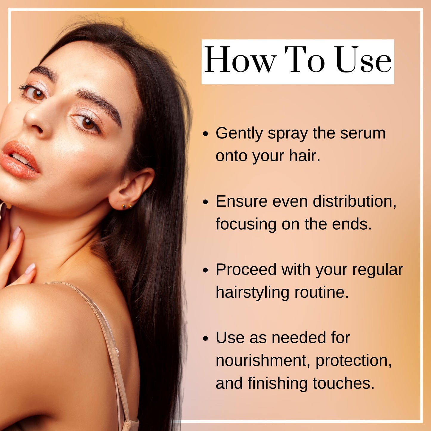 - Easy Application: Our serum comes with a convenient spray pump, making application a breeze - simply spritz a few times on damp or dry hair, and you're ready to roll!
