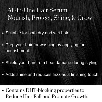 - Deep Hydration: Say goodbye to dryness as our serum deeply moisturizes, restoring your hair's natural shine.
