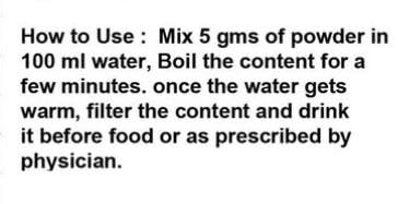 - Usage: Take 3 gms powder, 1 to 2 times a day or as advised by the physician