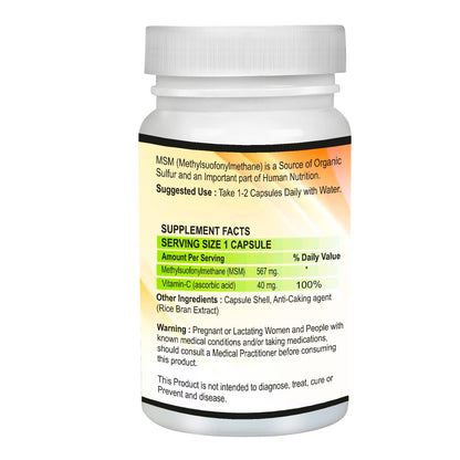 - MSM + Vitamin C- Our MSM capsules are combined with vitamin C to achieve the best effect. This ensures that the body can be protected from external harmful influences.