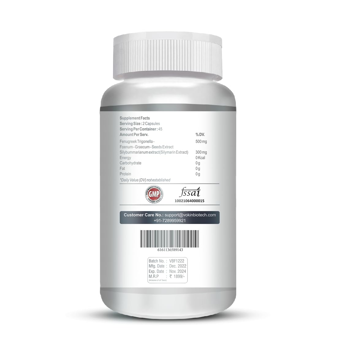 Vokin Biotech Fenugreek Seed Extract Supplement 500mg, Silymarin Extract 300mg, 90 capsules (Pack of 1)