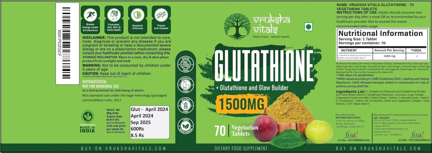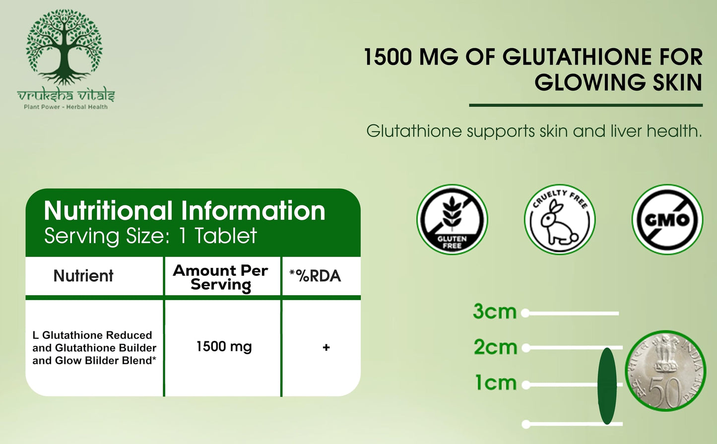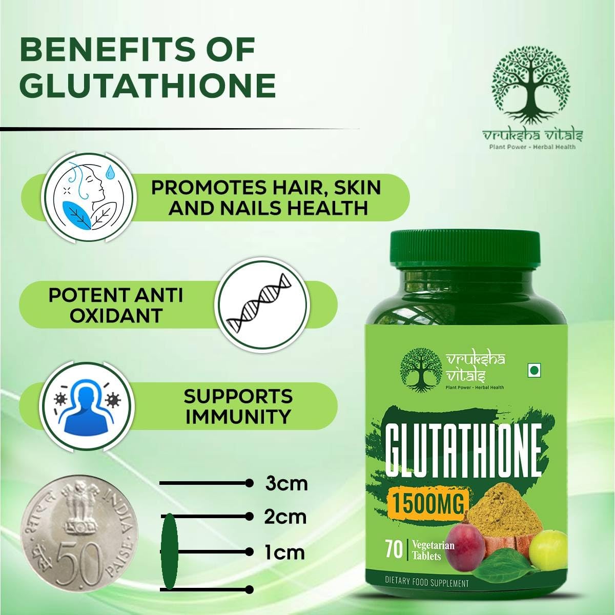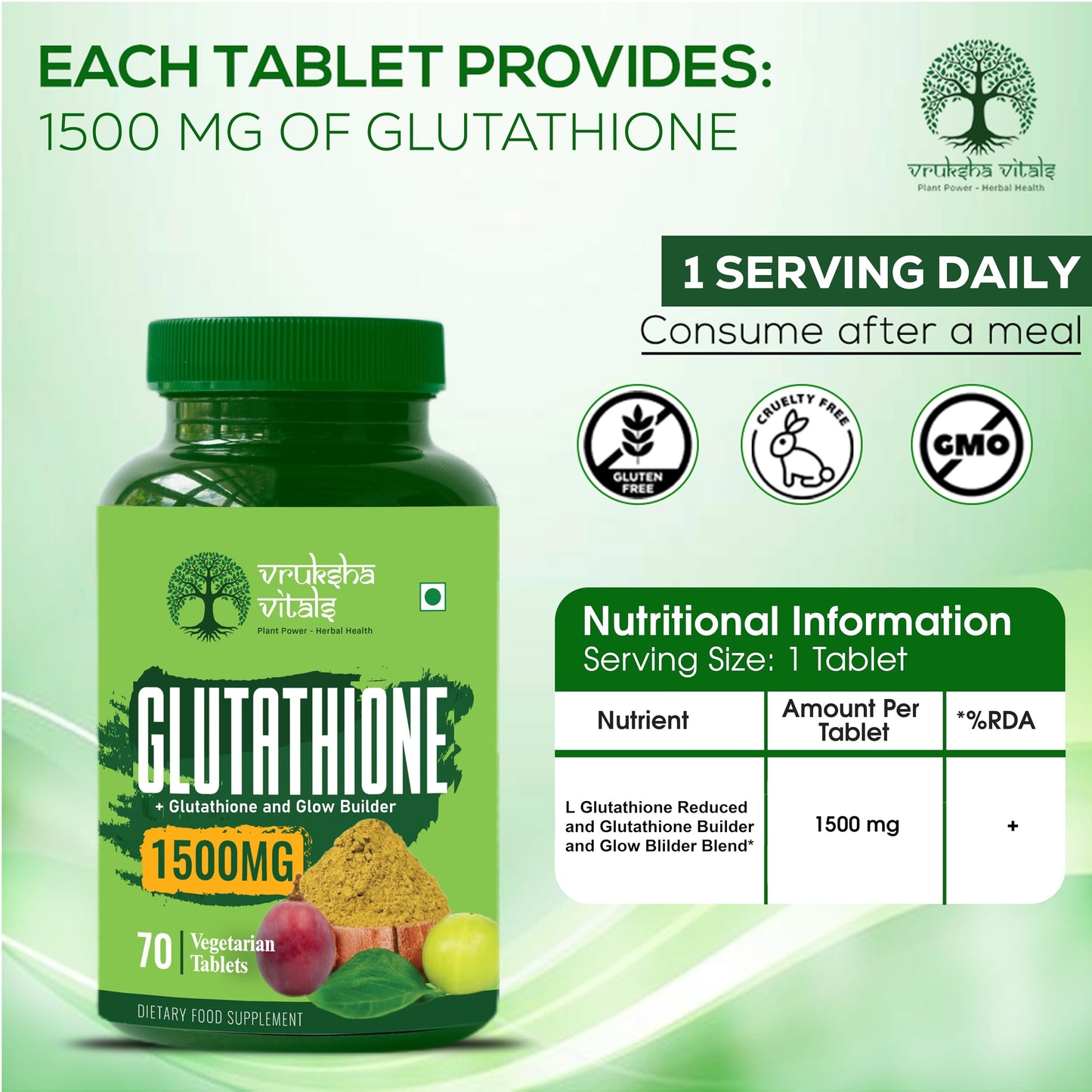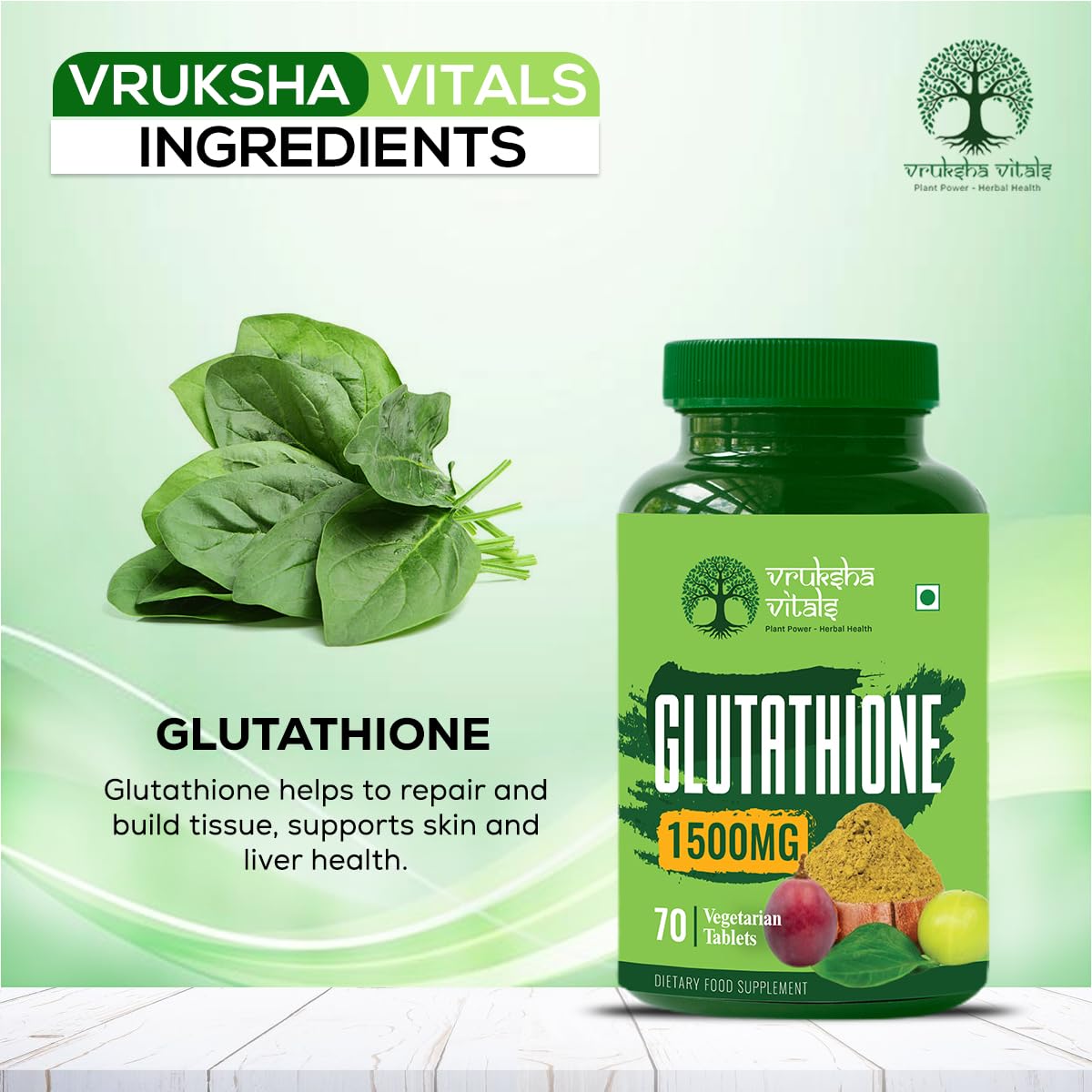Vruksha Vitals Glutathione 1500 mg - 70 Tablets with Vitamin C and Milk Thistle, Amla & Grapeseed Extracts (Plant based Capsules Supplement)