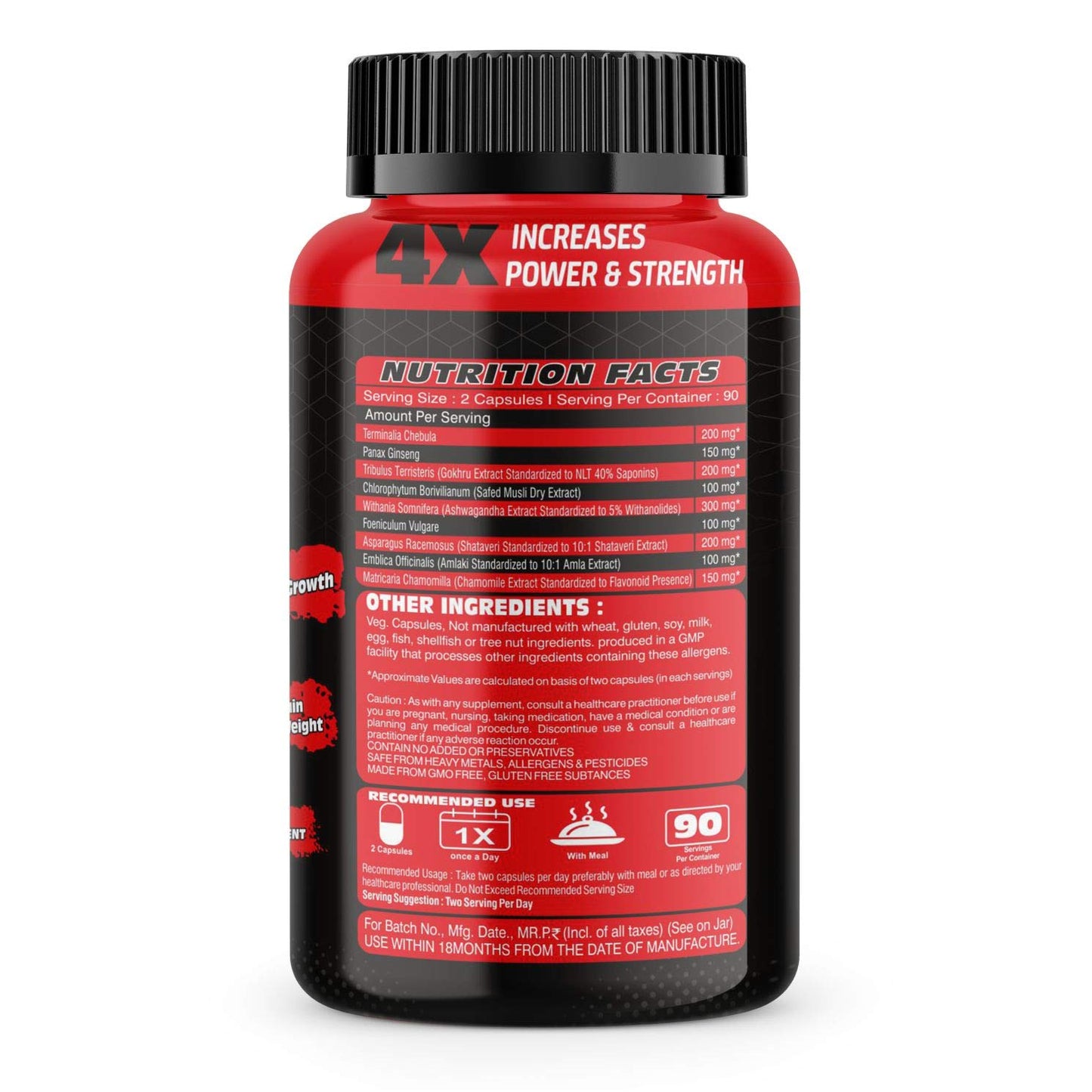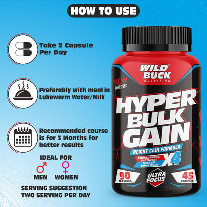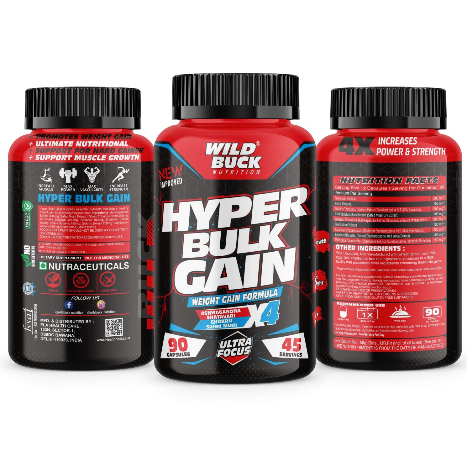 Wild Buck Hyper Bulk Gain Mass & Weight Gainer Capsule, Daily Muscle Building For Men & Women- 90 Cap.