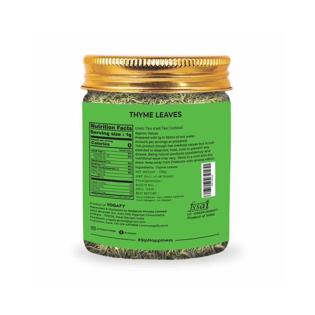 YOGAFY Organic Thyme Leaves I Tea Leaves for Cough and Cold | 100 Gram - 50 Cups