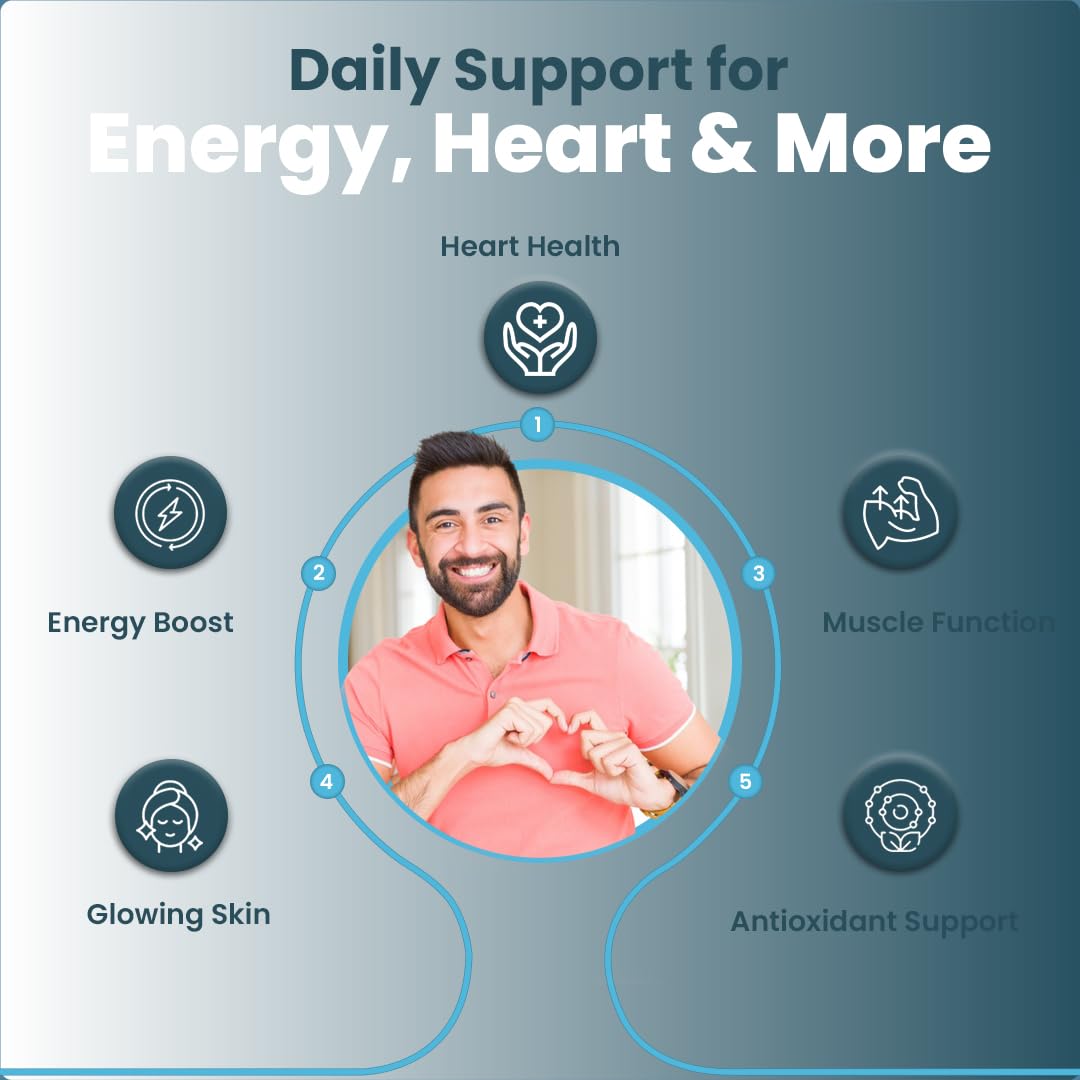 - Supports Heart Health - Your heart needs energy to keep working smoothly every day. CoQ10 helps fuel that energy, while Piperine ensures your body absorbs it well. Together, they support your heart’s natural rhythm and daily wellness.